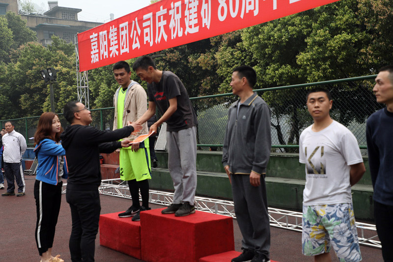 越野賽分男、女4000米個人競技跑、方陣健身跑、自由健身跑三個項目。各單位男女各報三名選手參加競技跑前八名的爭奪,早上7:30分,隨著一聲發(fā)令槍響,競技跑的選手們沖出起跑點,經(jīng)集福橋向白果村叉路口中轉(zhuǎn)點跑去,一路你追我趕,經(jīng)受住耐力和體力的考驗,最終決出前八名。男子組冠亞季軍由保衛(wèi)部宋偉、機關黎發(fā)強、綜合服務公司龍安明獲得,嘉陽煤礦粱正會、綜合服務公司鄧瓊、川投峨旅公司王雪梅則奪得女子組前三名。隨即,各單位組成方陣列隊入場,他們高舉旗幟,高呼“我運動、我健康、我快樂”“振興嘉陽、再創(chuàng)輝煌”等口號精神抖擻地入場。集團公司黨委書記、董事長杜勤,總經(jīng)理范勤英分別為男子組和女子組前八名頒獎。工會主席鐘衛(wèi)旗在啟動儀式上作動員講話,對公司多年來的文體活動開展情況進行了回顧,并對今年建礦80周年健身活動作出了安排,倡導大家多運動愛運動。由集團公司黨委書記、董事長杜勤宣布慶祝建礦80周年暨全民健身活動正式啟動。各單位方陣依序開始起跑,匯入到自由健身跑的泱泱人流中。