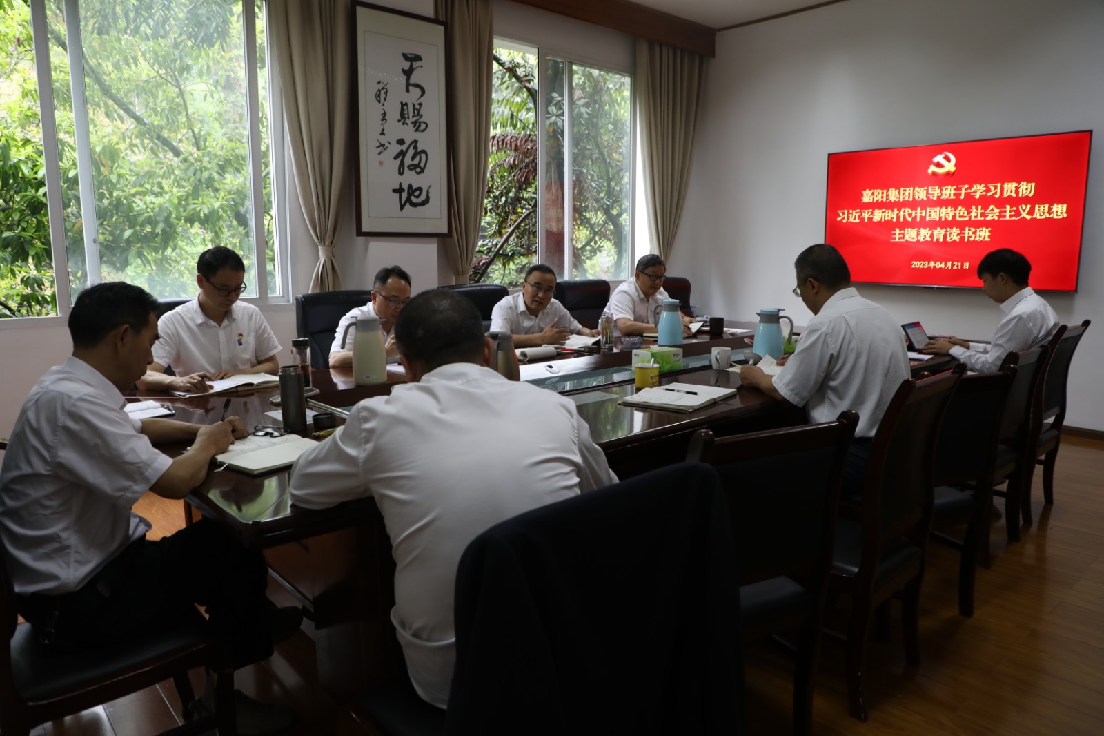 4月21日,嘉陽(yáng)集團(tuán)領(lǐng)導(dǎo)班子主題教育讀書班開展學(xué)習(xí)交流,領(lǐng)導(dǎo)班子成員交流習(xí)近平新時(shí)代中國(guó)特色社會(huì)主義思想的學(xué)習(xí)心得體會(huì),黨委書記、董事長(zhǎng)杜勤講話。
