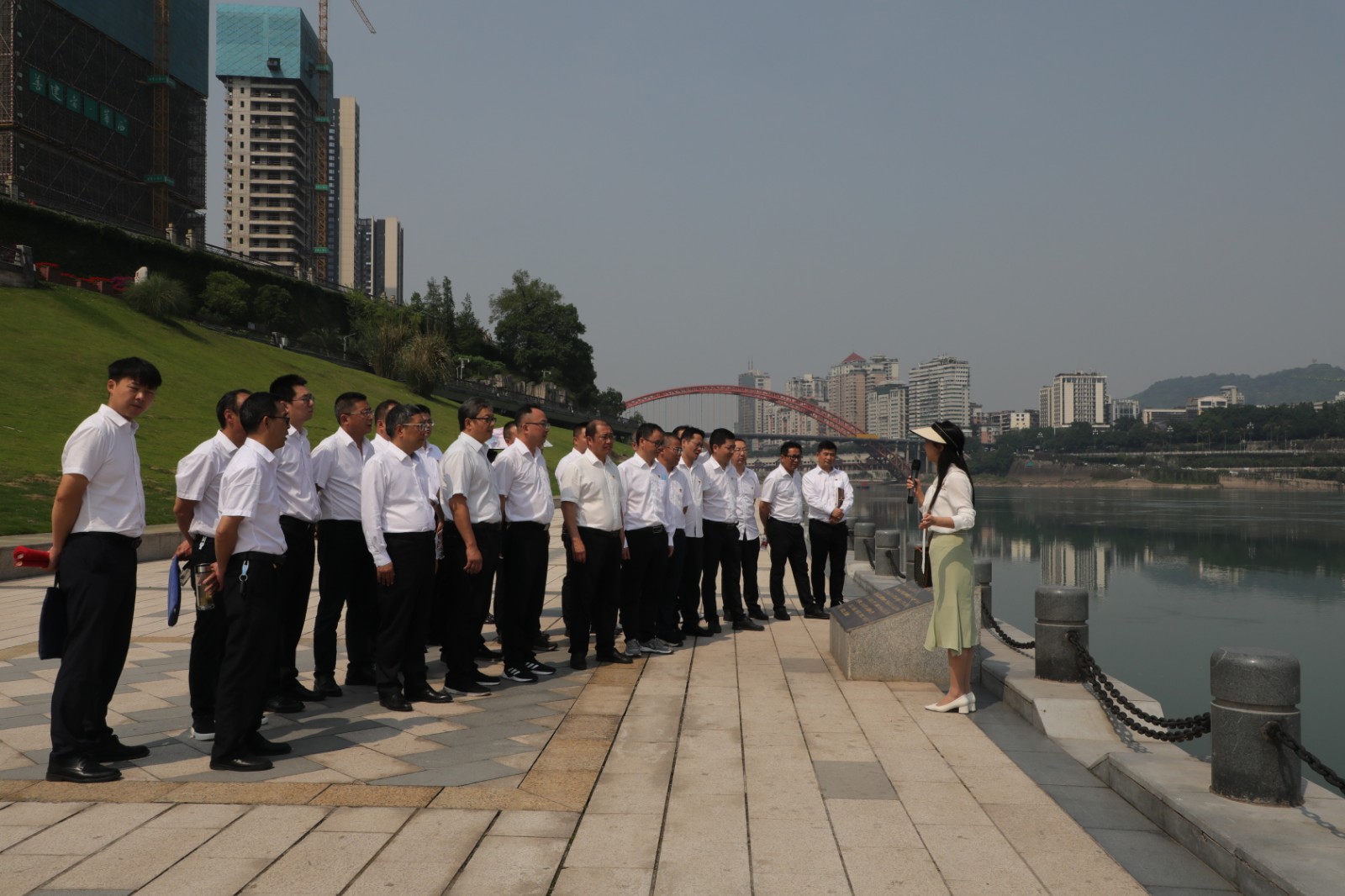 在三江口,兩岸綿延至遠的親水步道,環(huán)境優(yōu)美的長江公園,滿目含翠,鳥翔魚躍,水青、岸綠、景美,一幅人與自然和諧共生的動人畫卷徐徐展開,“共抓大保護、不搞大開發(fā)”的生動實踐呈現(xiàn)眼前。學員們聆聽宜賓市委黨校副教授廖艷現(xiàn)場講述,了解習近平總書記在三江口考察長江流域生態(tài)修復保護、禁捕退捕等情況時的真實場景,身臨其境感悟習近平總書記關于“綠水青山就是金山銀山”的發(fā)展理念,深刻領會“筑牢長江上游生態(tài)屏障,以釀美酒的標準守護一江清水”的重要指示和殷殷囑托。