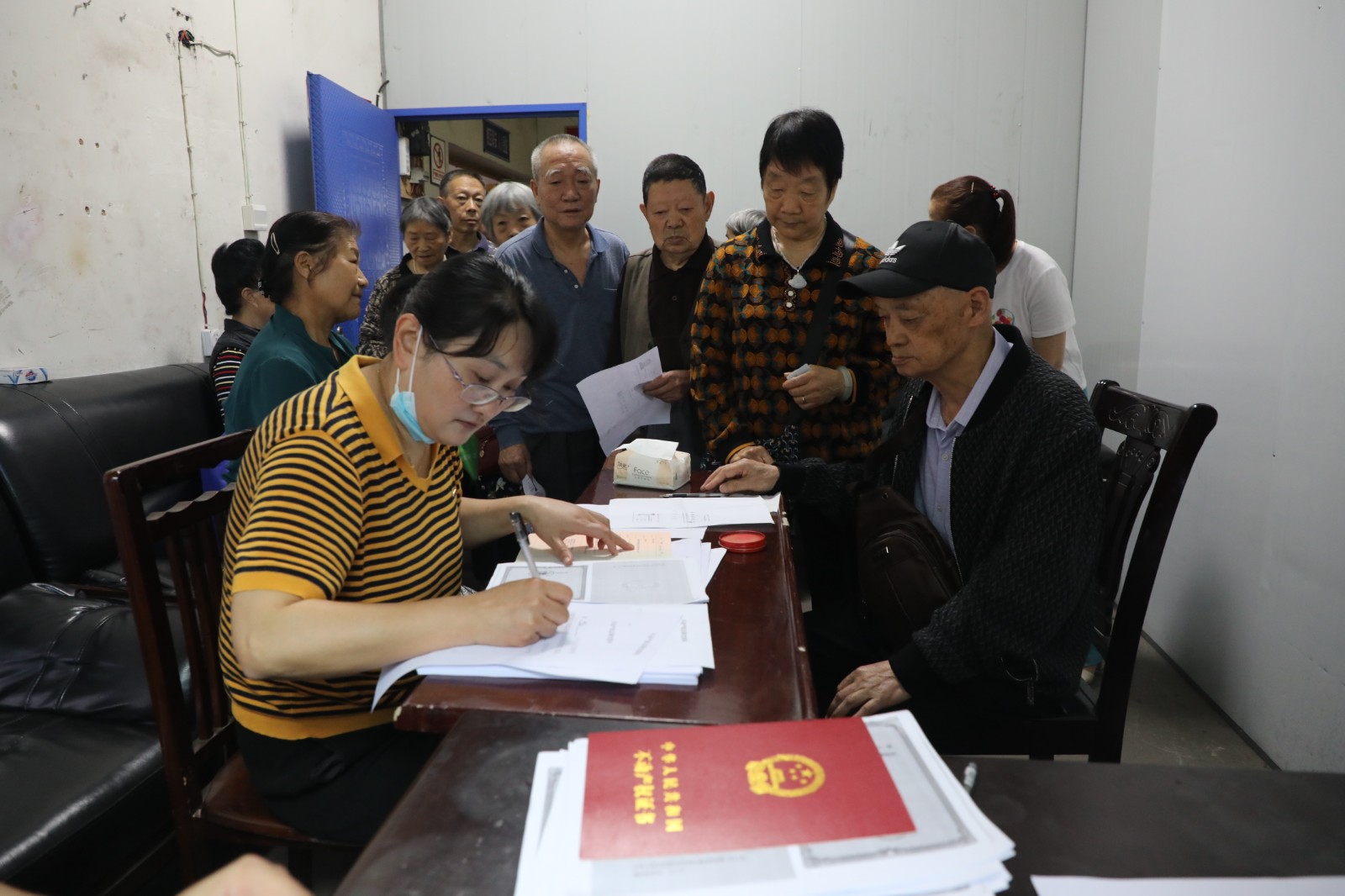 因跨度時間長,歷史遺留問題多,住戶情況變化大……接到任務后,工作組人員對石溪1-4棟的112戶住戶挨家挨戶逐一進行資料核查與登記。入戶調查過程中,登記簿上原住戶很多信息發(fā)生變化:有已另遷他處又未留聯(lián)系方式的;有年老已故的;有家庭變故離婚的;有私下交易已易主的;有受多年未能領證影響,只發(fā)牢騷不愿配合的……信息不對稱,住戶不配合也讓工作組工作推進難度加大。經過上千次電話溝通,多次上門擺談,總算完成了初期資料完善與登記。同時,對1-4棟的住房重新進行報建、環(huán)評、規(guī)劃選址論證,土地出讓權的取得,辦證分割等一系列的工作同步進行。不動產權辦證過程中,針對辦證住戶老齡化,辦證資料復雜,辦證流程繁瑣等實際困難,工作組人員及時溝通,求得理解和支持,切實為辦證住戶提供方便與幫助,保證了辦證工作順利圓滿結束。