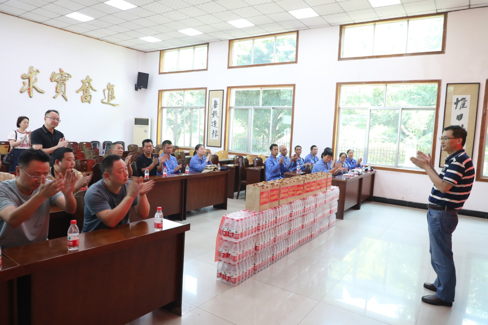 在嘉陽(yáng)集團(tuán)底樓會(huì)議室,鄭祝彬主任向嘉陽(yáng)煤礦、機(jī)電制造維修分公司、綜合服務(wù)公司、物資供銷(xiāo)公司等二級(jí)生產(chǎn)單位高溫戰(zhàn)線的20名優(yōu)秀職工和生產(chǎn)骨干致敬,對(duì)他們?cè)诟邷乜崾钕聢?jiān)守崗位、認(rèn)真履職盡責(zé)、確保安全生產(chǎn)道一聲辛苦了,他叮囑大家一定要注意防暑降溫、合理安排作息時(shí)間,切實(shí)做好防暑降溫工作。隨后,鄭祝彬?yàn)榇蠹宜蜕暇栈?、金銀花、茶葉等防暑慰問(wèn)品。黨委副書(shū)記、工會(huì)主席謝建國(guó)代表企業(yè)感謝市總工會(huì)長(zhǎng)期以來(lái)對(duì)企業(yè)的支持和礦山職工的關(guān)愛(ài)。面對(duì)酷暑天氣,嘉陽(yáng)集團(tuán)工會(huì)將持續(xù)引導(dǎo)企業(yè)各基層工會(huì)結(jié)合實(shí)際開(kāi)展好“送清涼”活動(dòng),切實(shí)保障廣大職工的生命安全和身體健康。