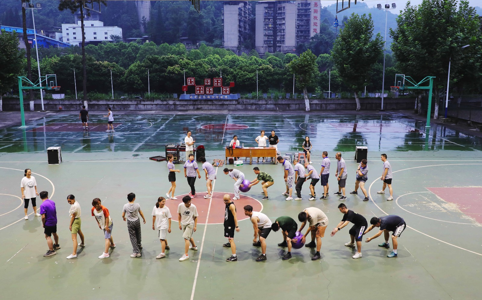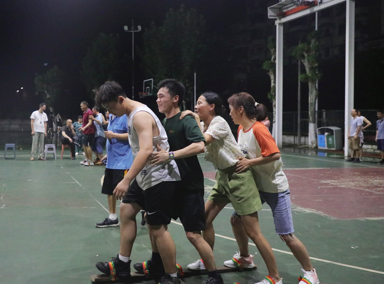 此次趣味運動會精心設置了一系列妙趣橫生的項目,包括“跳大繩接力”“步調(diào)一致”“海底傳月”“滾鐵環(huán)接力”“地上投籃”,吸引廣大職工的熱情參與?!凹佑停瑳_沖沖!”在圍觀職工家屬的助威聲中,滾鐵環(huán)的隊員像箭一樣沖出去,鐵環(huán)倒了立馬撿起來重新出發(fā),一刻也不猶豫。隊員一個接一個地出發(fā),交接的是鐵鉤鐵環(huán),傳遞的是童年時的快樂,歡快的加油助威聲浪帶火了比賽,讓參與者玩嗨了,圍觀者也樂翻了?!疤罄K接力”項目每一次跳躍都盡顯風采,也跳出了許多有趣的“表情包”;“步調(diào)一致”項目協(xié)力而行,賽場上的每一句“左右左”都喊在了榮耀之路上。