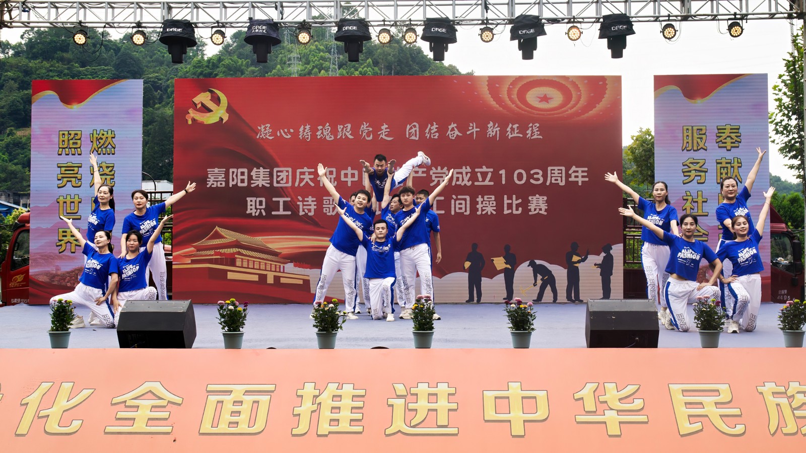 來(lái)自公司7個(gè)單位的8個(gè)節(jié)目精彩亮相,福溪粉煤灰公司帶來(lái)的《火火的中國(guó) 火火的時(shí)代》拉開了比賽的序幕,代入感極強(qiáng)。物資供銷公司、嘉陽(yáng)煤礦、機(jī)電分公司、綜合服務(wù)公司表演的《向前沖》《搏擊操》《浪漫櫻花》《健康動(dòng)起來(lái)》輪番上場(chǎng),各有千秋。川投峨旅公司帶來(lái)的《同愛同在》動(dòng)感十足,感染力強(qiáng),迅速點(diǎn)燃現(xiàn)場(chǎng)氣氛。公司機(jī)關(guān)表演的《舞動(dòng)青春》青春洋溢,活力無(wú)限,讓人眼前一亮。壓軸出場(chǎng)的嘉陽(yáng)煤礦表演的《一起向未來(lái)》將比賽推向高潮,獨(dú)特新穎的創(chuàng)意,變幻多端的隊(duì)形,熱辣滾燙的音樂,強(qiáng)勁有力的節(jié)拍,將煤礦工人的精氣神展現(xiàn)得淋漓盡致,也在8個(gè)節(jié)目中脫穎而出拔得頭籌。