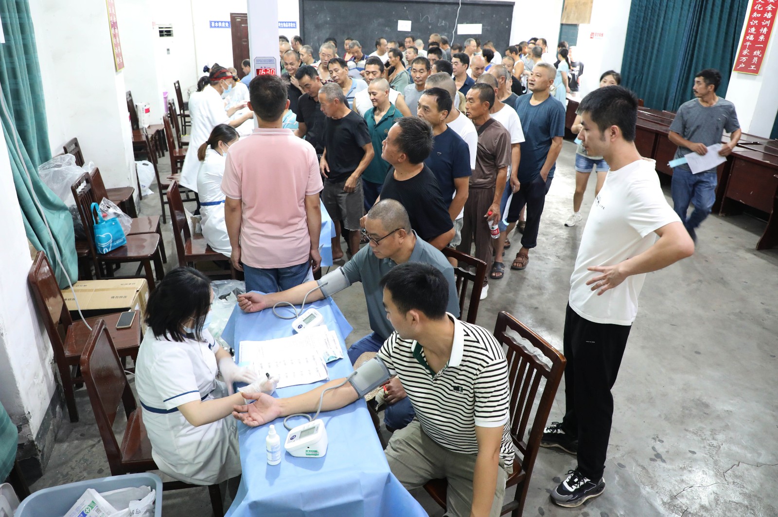 8月29日,新職工入職前身體健康檢查與老職工離職前職業(yè)病檢查在嘉陽職培校同時進(jìn)行。檢查內(nèi)容包括包括:問診、一般檢查、血檢、尿常規(guī)、耳鼻咽喉、肺功能、電測聽、DR等。體檢合格后,他們將參加崗前培訓(xùn),經(jīng)培訓(xùn)考試合格后與企業(yè)簽定試用期勞動合同。