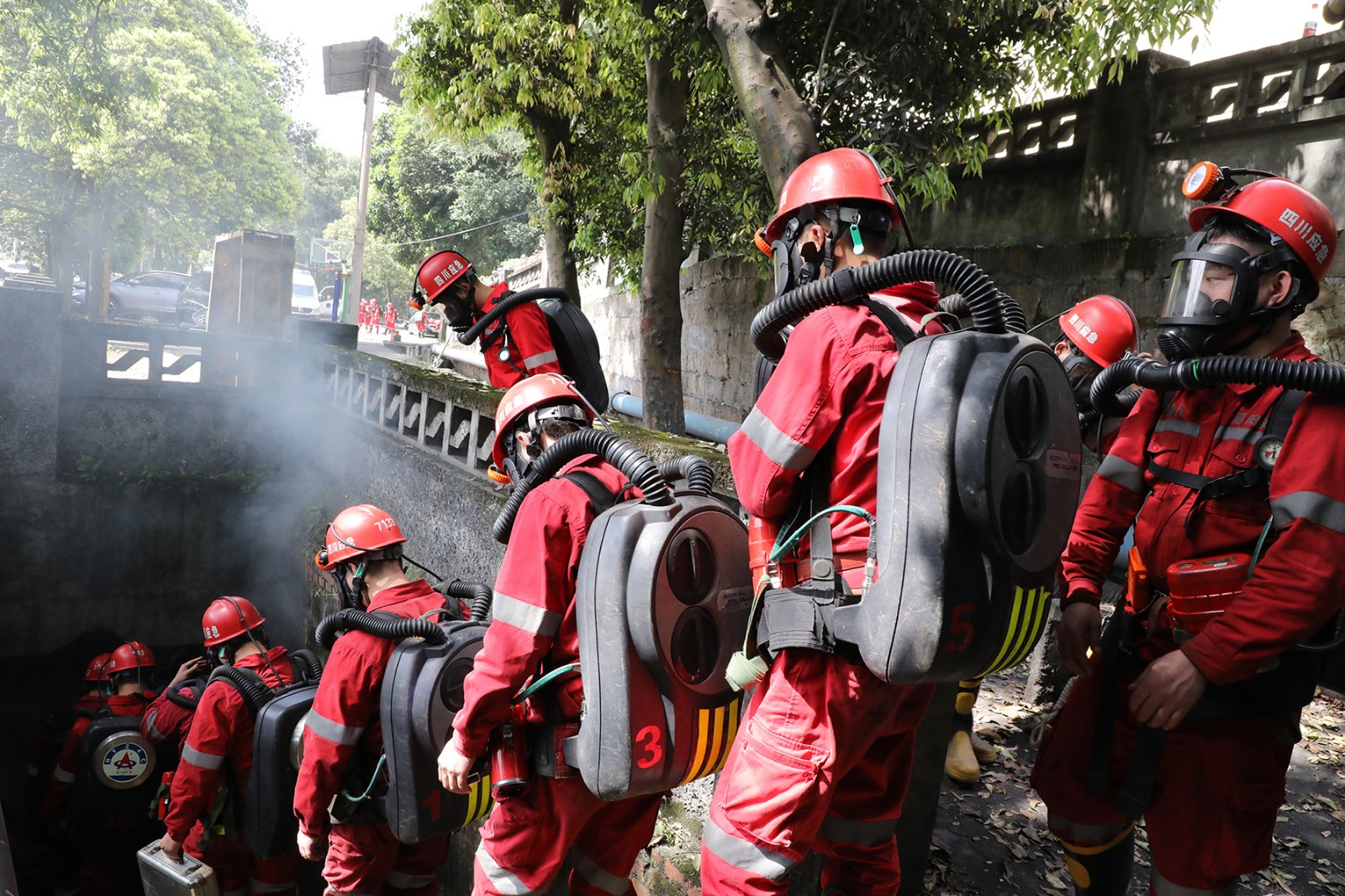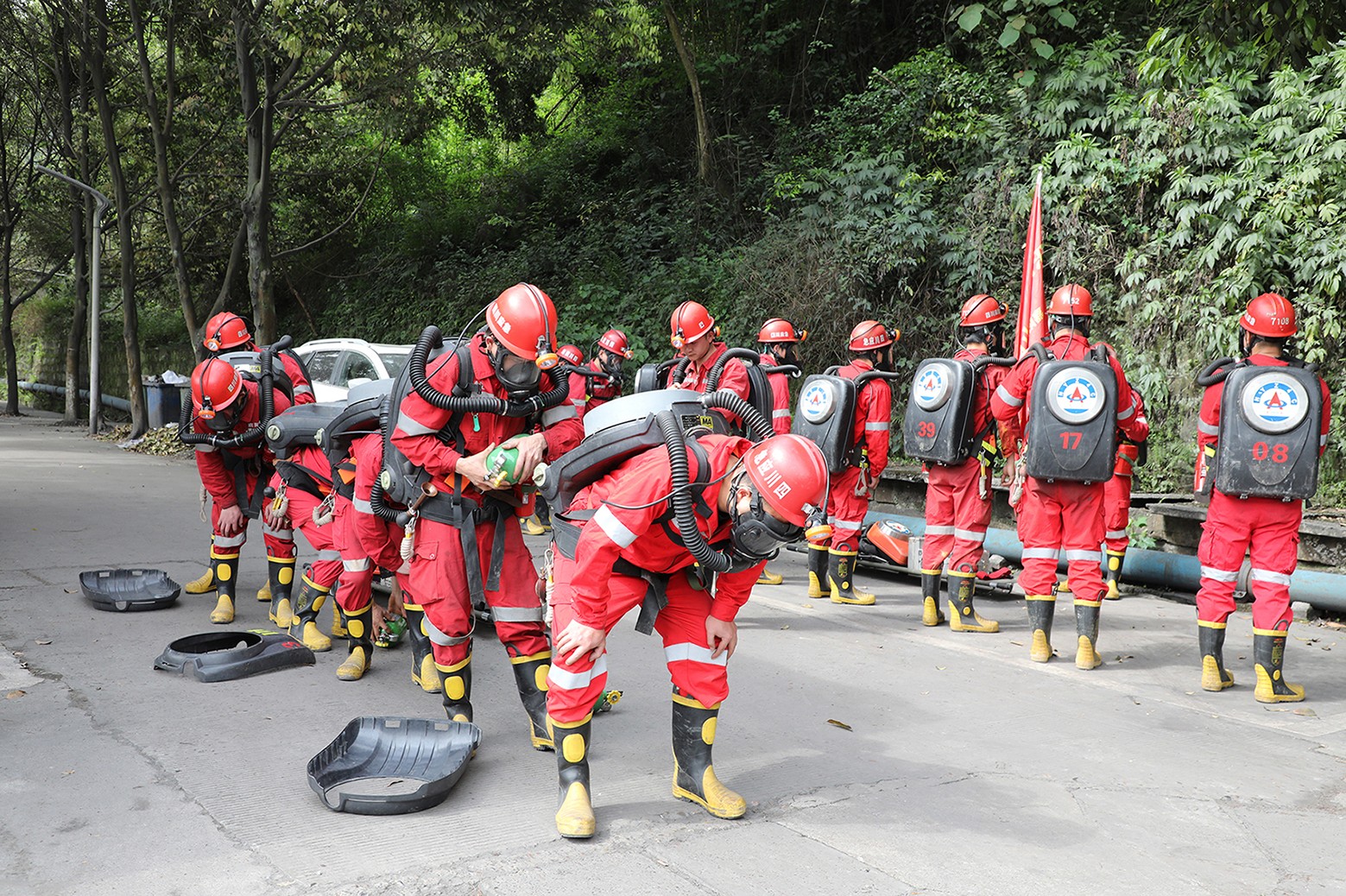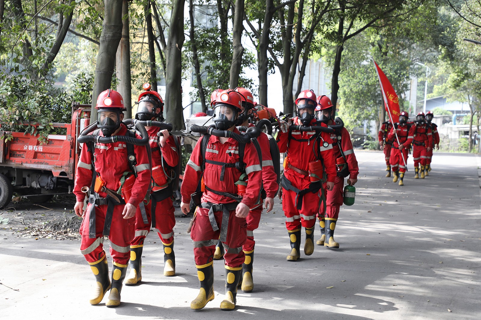 演練在模擬礦山災(zāi)害事故的緊張氛圍中正式啟動(dòng)。聞警出動(dòng)中,樂山隊(duì)值班小隊(duì)迅速反應(yīng),以最快速度奔赴現(xiàn)場(chǎng),待機(jī)小隊(duì)與嘉陽隊(duì)也毫不懈怠,緊跟其后。各小隊(duì)在集團(tuán)公司救護(hù)隊(duì)訓(xùn)練場(chǎng)迅速集結(jié),有序領(lǐng)受任務(wù)。隨后,各小隊(duì)隊(duì)長嚴(yán)格按照標(biāo)準(zhǔn)化流程,組織隊(duì)員對(duì)各類救援裝備進(jìn)行細(xì)致檢查,確保裝備性能完好,為后續(xù)救援工作提供堅(jiān)實(shí)保障。