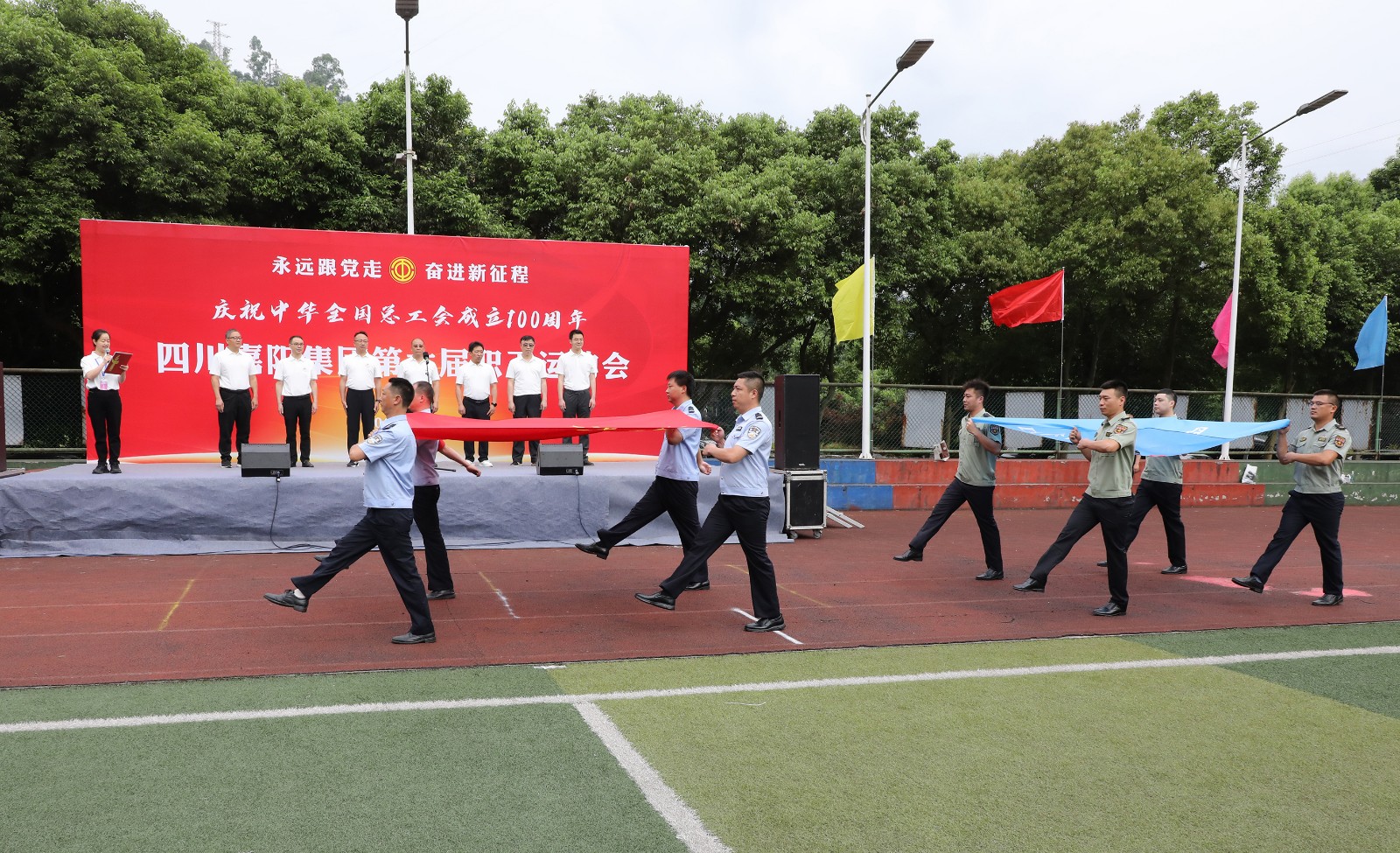 本屆運動會設(shè)有足球、籃球等3個大項13個小項。5月上旬起,各單位300多名運動員兼顧工作與訓(xùn)練,不懼炎熱積極參賽。球類項目中,塑質(zhì)球、小金屬球團體賽別具特色;田徑賽場,縣級以上馬拉松選手大放異彩;拔河比賽深受職工家屬喜愛。最終,嘉陽煤礦、公司機關(guān)和川投峨旅公司位列總成績前三。其中,嘉陽煤礦和機關(guān)代表隊在7個球類小項中的4項獲前三名;嘉陽煤礦在拔河比賽中包攬男女組冠軍;物資供銷公司的徐迎曦、王紅梅分獲女子越野比賽冠亞軍,川投峨旅的董艷獲季軍;嘉陽煤礦的楊濤、張國云摘得男子越野比賽一二名,川投峨旅公司的李正東獲第三名。