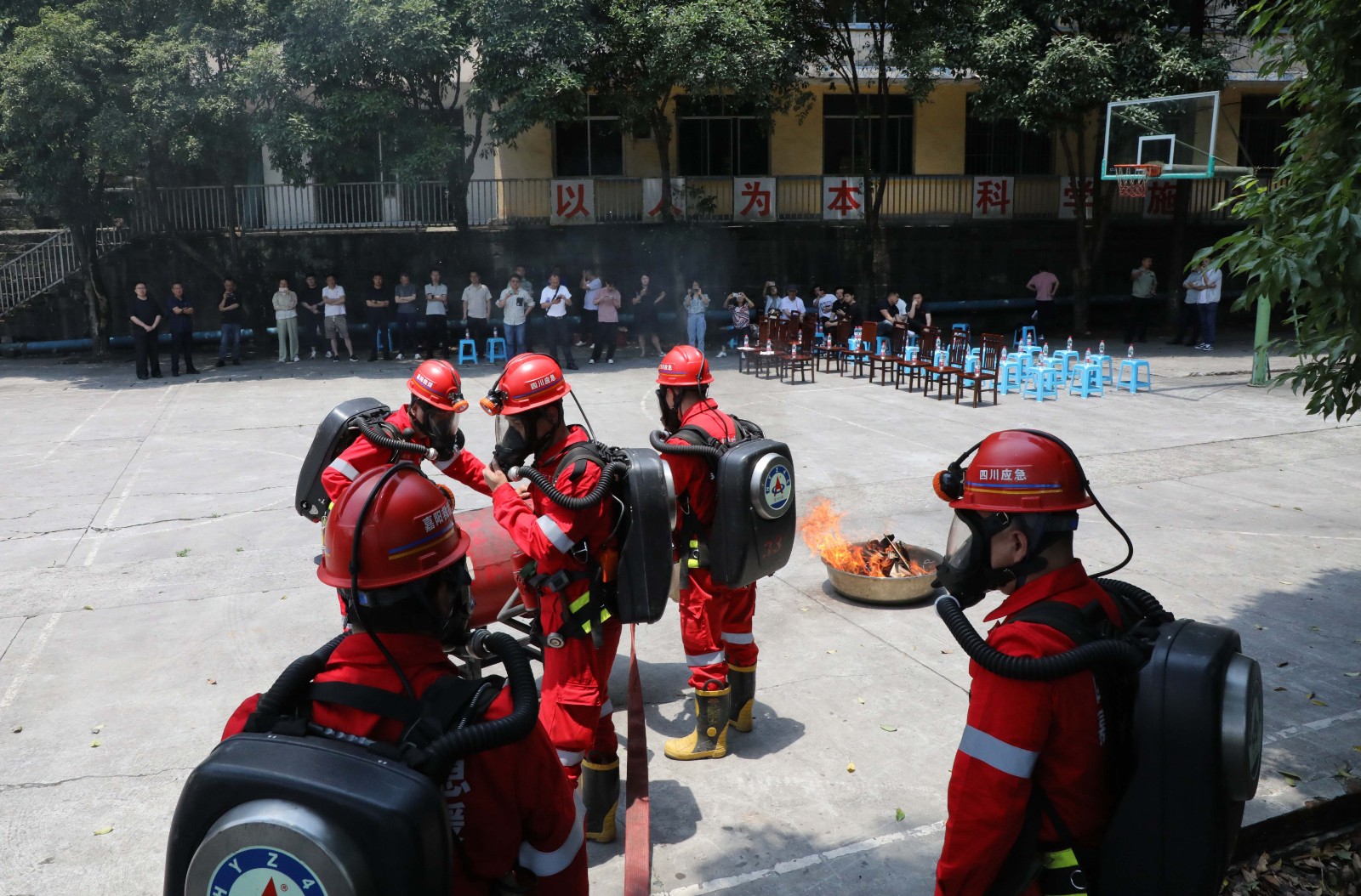 觀摩團(tuán)觀看了集團(tuán)公司企業(yè)宣傳片《礦山脊梁》、嘉陽礦山救護(hù)隊(duì)宣傳片《生命之光》,實(shí)地察看了礦山救護(hù)隊(duì)生活訓(xùn)練場(chǎng)所,裝備器械管理場(chǎng)所,通過詢問了解礦山救護(hù)隊(duì)機(jī)構(gòu)設(shè)置、組織架構(gòu)、管理模式、制度辦法、設(shè)施裝備以及日常訓(xùn)練等相關(guān)內(nèi)容。隨后,礦山救護(hù)隊(duì)員們向觀摩團(tuán)展示了自救器、蘇生器、破拆、液壓起重、災(zāi)區(qū)電話等儀器操作使用,模擬演示了礦山救護(hù)隊(duì)進(jìn)入災(zāi)區(qū)現(xiàn)場(chǎng),開展止血、包扎、固定、搬運(yùn)等創(chuàng)傷急救環(huán)節(jié),全過程展示了聞警出動(dòng)、戰(zhàn)前檢查、高倍數(shù)泡沫滅火機(jī)滅火、氧氣瓶互換、總結(jié)講評(píng)的綜合演練。隊(duì)員們飽滿的精神狀態(tài)和嫻熟的操作技藝獲得了觀摩團(tuán)高度稱贊。大家表示,此次觀摩學(xué)到了很多實(shí)用的知識(shí),進(jìn)一步加深了對(duì)非煤礦山應(yīng)急救援隊(duì)伍組建、日常訓(xùn)練管理、綜合實(shí)戰(zhàn)演訓(xùn)的認(rèn)識(shí)。