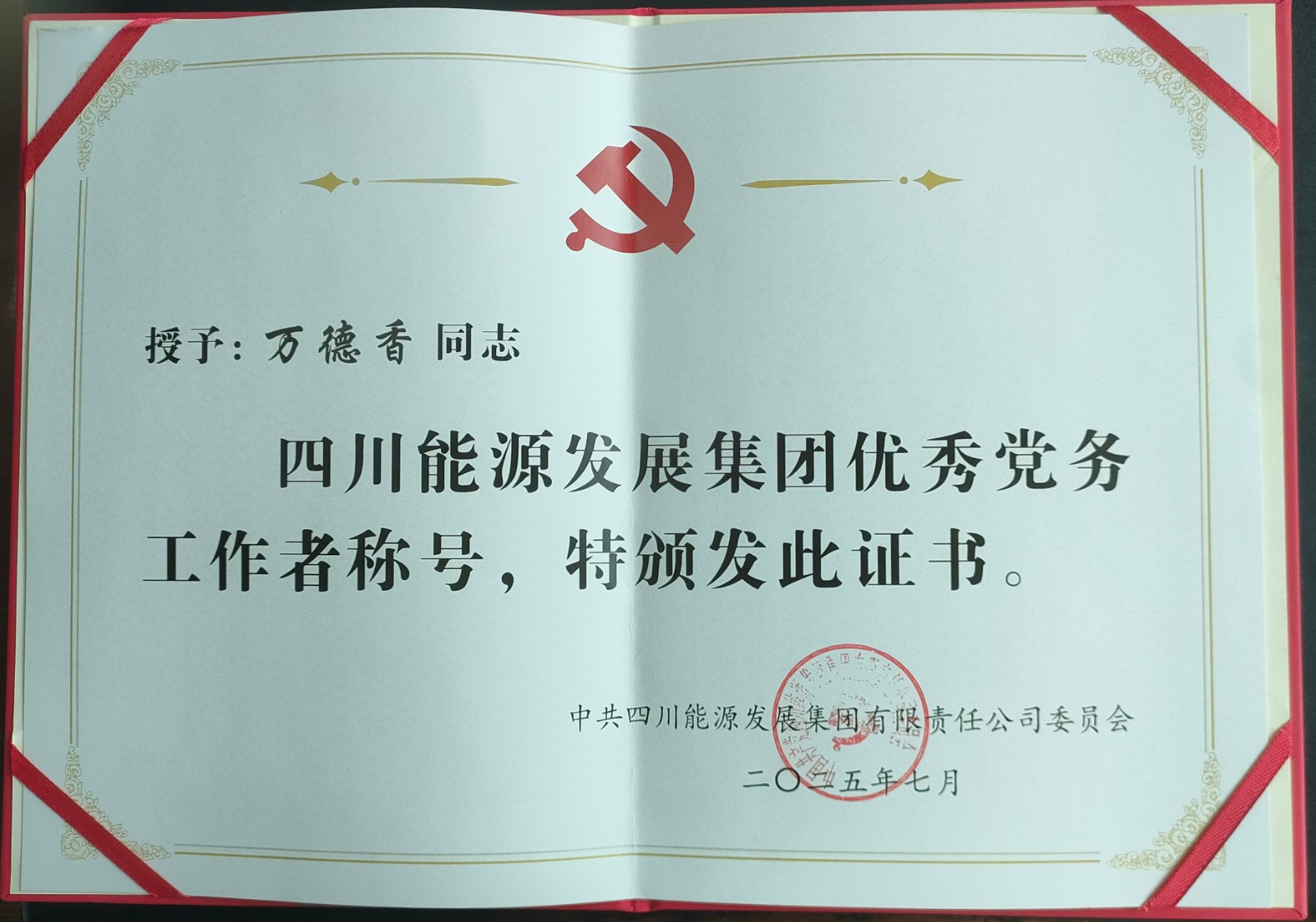 近日,四川能源發(fā)展集團(tuán)表彰2024年度優(yōu)秀共產(chǎn)黨員、優(yōu)秀黨務(wù)工作者、先進(jìn)黨組織,萬(wàn)德香、張獻(xiàn)云、周學(xué)軍,采煤一隊(duì)黨支部,喜獲表彰。