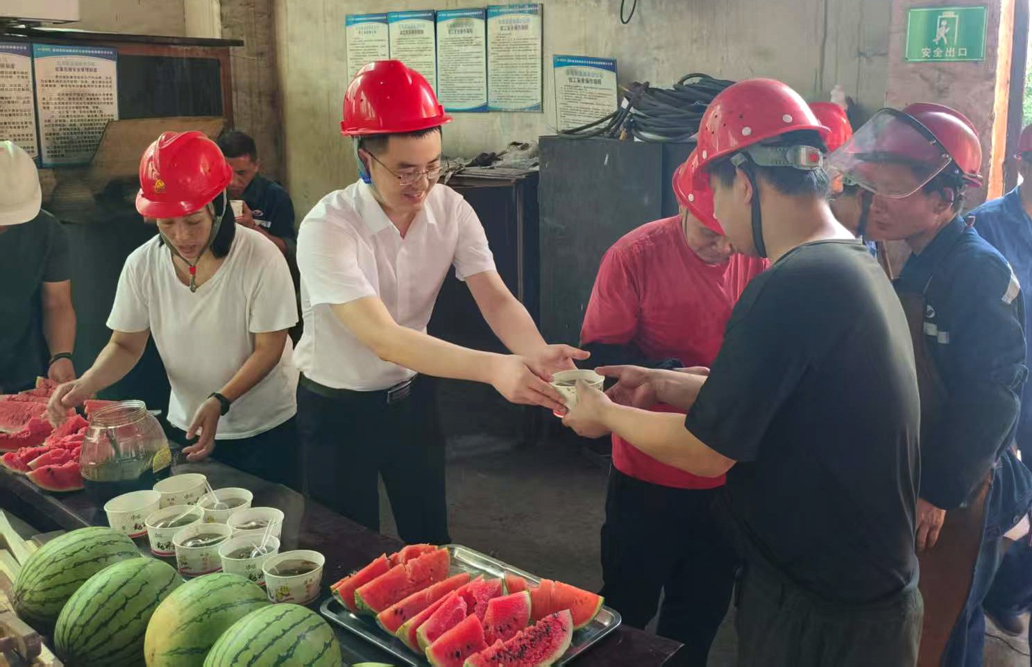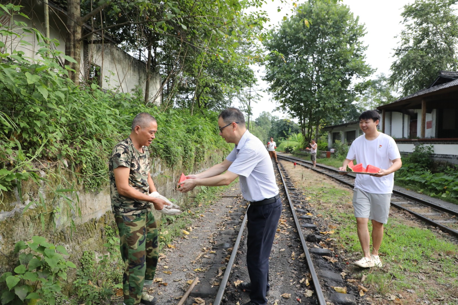 “兄弟們,把手中的活放一放,過來吃口西瓜涼快涼快……”,在火車機(jī)頭、在檢修車間、在芭石鐵路、在黃村井井口、在芭蕉溝花圃……紀(jì)委書記呂明強(qiáng)一邊招呼著火車司機(jī)、檢修工、道班維修工、講解員、花圃養(yǎng)護(hù)工……一邊將切好的西瓜送到他們手中。每到一處,呂明強(qiáng)認(rèn)真了解他們的工作情況,仔細(xì)叮囑他們合理安排作息時間,盡可能避開高溫時段在烈日下工作,同時要準(zhǔn)備好防暑藥品,落實(shí)好防暑措施,防止高溫中暑。