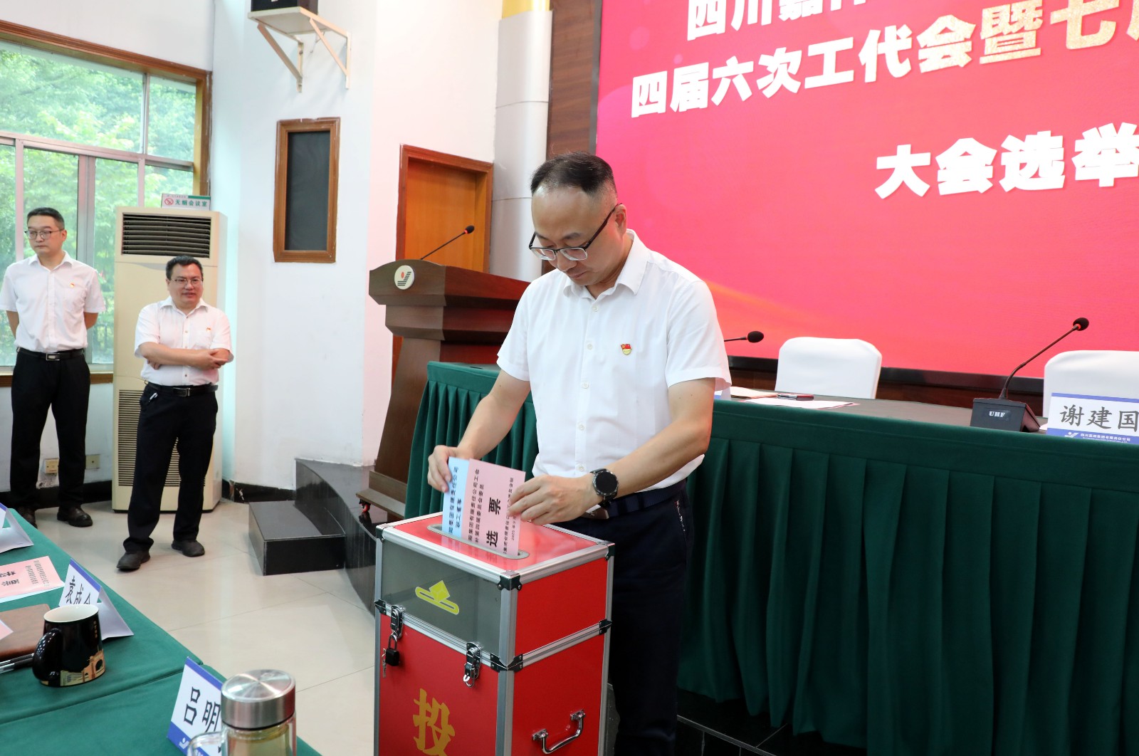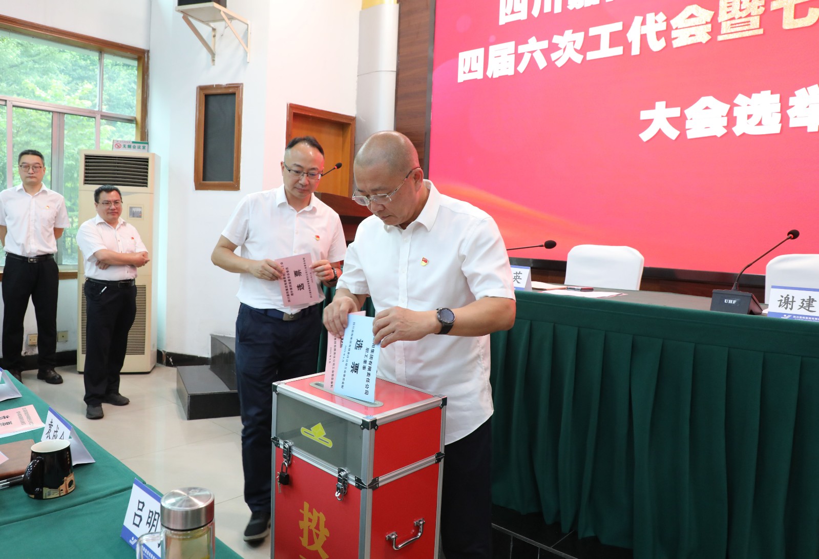 大會通過了主席團成員、主席、秘書長建議名單,大會主要議程,審議通過了《工會增補第四屆委員會委員候選人建議名單》《工會第四屆六次會員代表大會選舉辦法》《職工董事候選人建議名單》《七屆六次職工代表大會選舉辦法》。代表們認真履職,按照無記名投票方式進行選舉,王維洪同志當選為第四屆工會委員會委員、第五屆職工董事。會議還審議通過了《關于增補選舉工會委員會委員的決議》《關于選舉職工董事的決議》。隨后在召開的四屆二十七次工會委員會會議上進行了投票選舉,王維洪同志當選為公司工會第四屆委員會主席。
