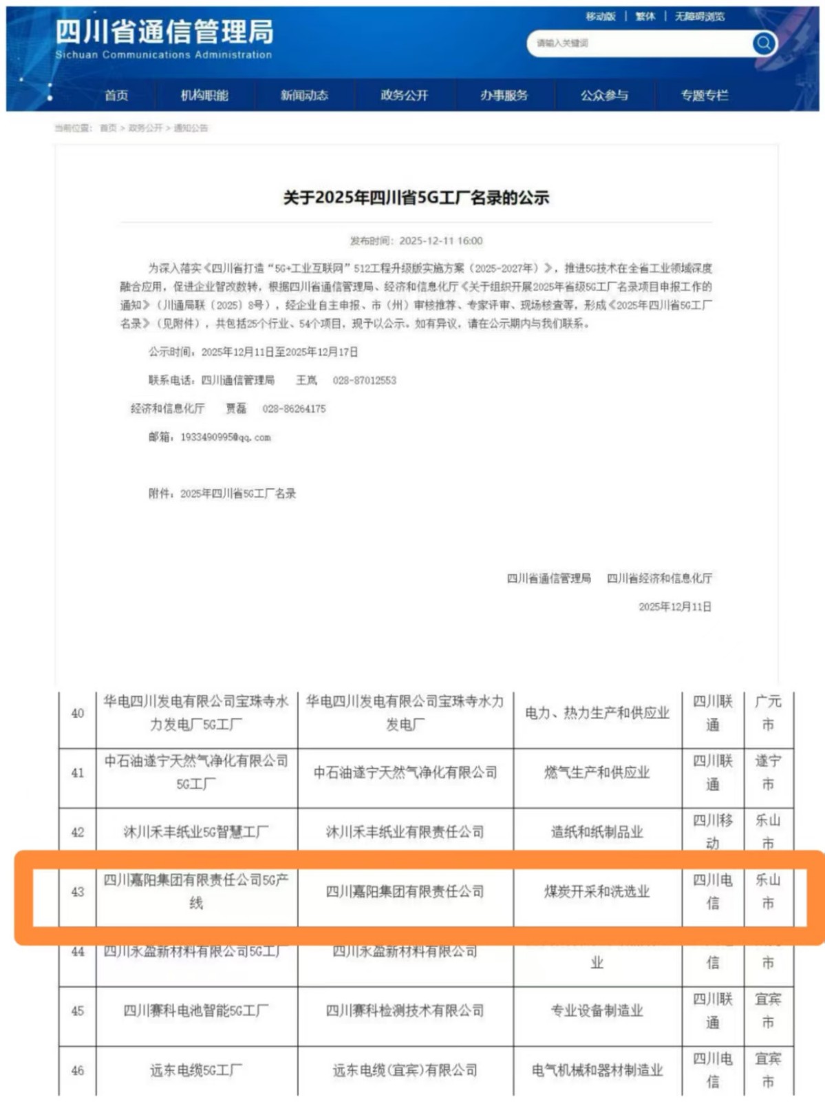 近日,四川省經(jīng)信廳與省通信管理局聯(lián)合發(fā)布《2025年四川省5G工廠名錄》,嘉陽集團5G產(chǎn)線作為煤炭開采和洗選業(yè)代表成功入選。這是嘉陽集團落實全省“5G+工業(yè)互聯(lián)網(wǎng)”512工程升級版要求的重要成果,標志著其薄煤層礦井智能化轉(zhuǎn)型獲省級權(quán)威認可,為西南地區(qū)煤礦數(shù)字化升級提供了可復制的“嘉陽范例”。