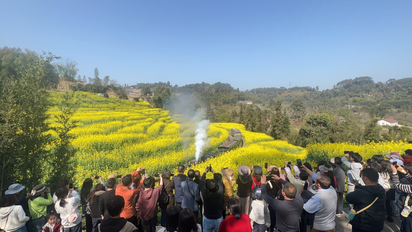 春節(jié)假期與油菜花期重疊,新產(chǎn)品引爆市場(chǎng)。段家灣“蓉早油七號(hào)”油菜花如期綻放,游客可沉浸式體驗(yàn)蒸汽火車(chē)穿越油菜花海的經(jīng)典畫(huà)面,成為社交媒體傳播熱點(diǎn),有力拉動(dòng)游客量激增。