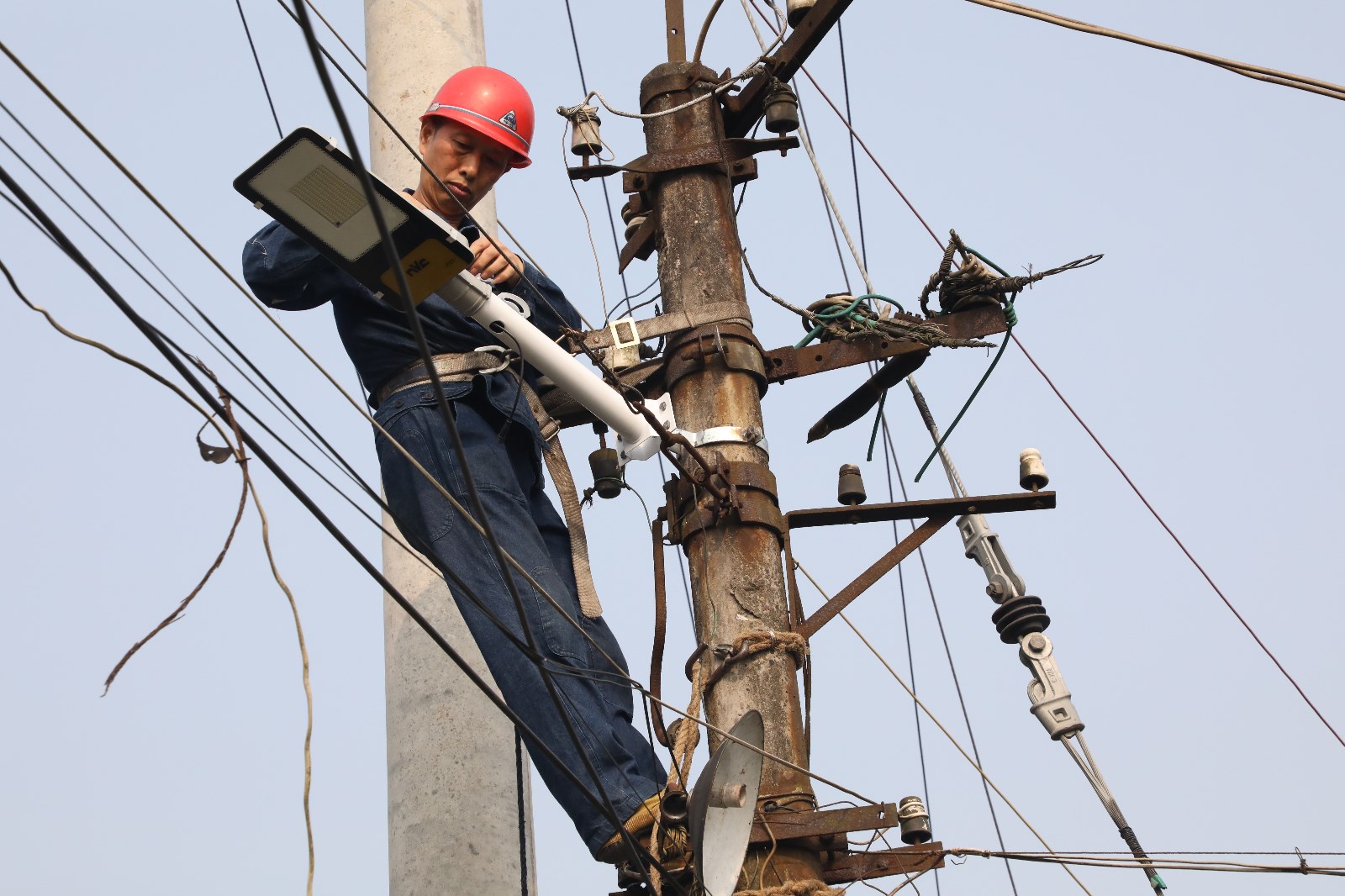 據(jù)石溪7號(hào)房居民反映,因去年電力線(xiàn)路改造后,機(jī)電分公司后門(mén)到石溪小火車(chē)車(chē)站鐵路沿線(xiàn)的路燈已不能使用,給周邊居民夜間出行造成了很大的困擾。機(jī)電分公司黨支部在集團(tuán)公司黨委的部署下,立即行動(dòng)起來(lái),組織電工班骨干一起協(xié)商解決這一難題,考慮到電源及后期電費(fèi)問(wèn)題,安裝太陽(yáng)能路燈是首選方案。5月10日一大早,電工班張志剛師傅就爬上了電桿,頭頂烈日開(kāi)始安燈工作,汗水很快浸透了他的工作服,經(jīng)過(guò)一天辛勤的工作,6盞太陽(yáng)能路燈終于安裝完畢。安燈工作受到沿線(xiàn)居民的高度關(guān)注,大家紛紛豎起大拇指點(diǎn)贊。