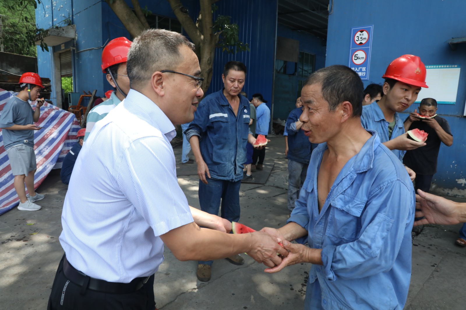 7月20日下午,機(jī)關(guān)第一黨支部和機(jī)關(guān)一分會(huì)黨員職工代表前往礦山機(jī)電制造維修分公司,向奮戰(zhàn)在高溫一線的職工送去西瓜、礦泉水,表達(dá)組織的關(guān)心、關(guān)愛(ài),并檢查防暑降溫工作落實(shí)情況。