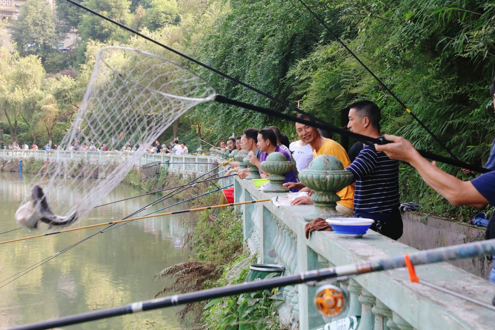 30日上午8時,公司“迎國慶”職工釣魚比賽正式開釣,在秋高氣爽、碧波蕩漾的觀音溪,參賽選手們個個興致高昂,現(xiàn)場調(diào)試線組、魚餌、魚漂、下竿,聚精會神地注視著浮標,等待著魚兒上鉤。選手們各顯身手,忙的不亦樂乎,隨著一陣陣魚兒拍打水花的聲音傳來,一條條鮮活的鯽魚、鯉魚被收進魚護。今年還吸引了女釣手加入,釣者、觀者共享其樂。比賽共設9支代表隊、90余名選手參加,經(jīng)過三個小時的比賽,機關隊再次榮獲冠軍,綜合服務公司獲得第二名、嘉陽煤礦二隊獲得第三名。