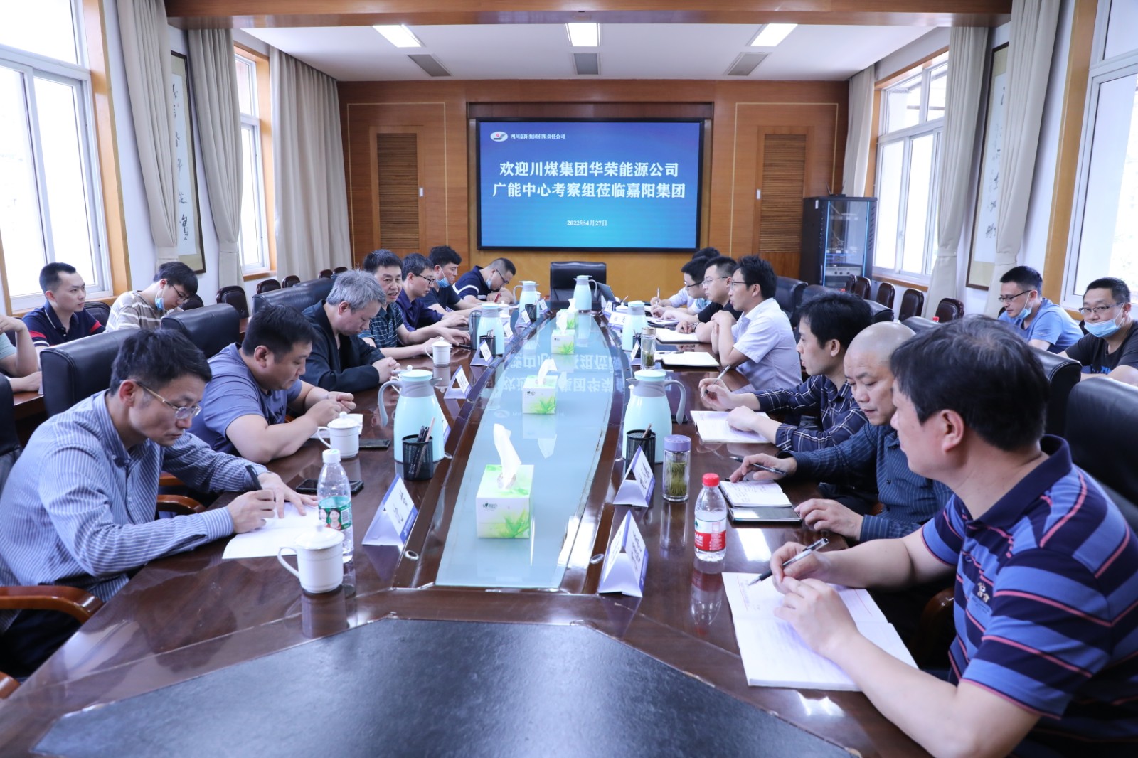 4月27日,川煤集團(tuán)華榮能源公司廣能中心生技部機(jī)運(yùn)副部長(zhǎng)彭高林一行11人到嘉陽(yáng)考察交流。