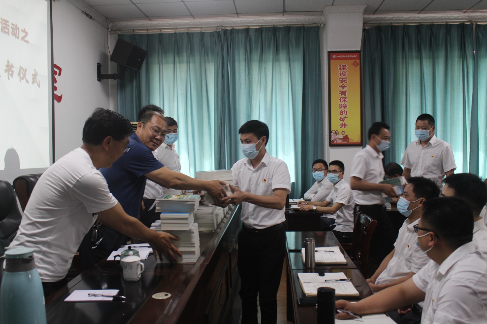 6月6日,嘉陽煤礦舉行安全書籍授書儀式,嘉陽集團(tuán)總經(jīng)理范勤英為煤礦各生產(chǎn)隊(duì)和礦辦相關(guān)負(fù)責(zé)人授最新安全讀本,針對(duì)近期煤礦安全生產(chǎn)實(shí)際指出安全技術(shù)管理新思路,提出新要求。
