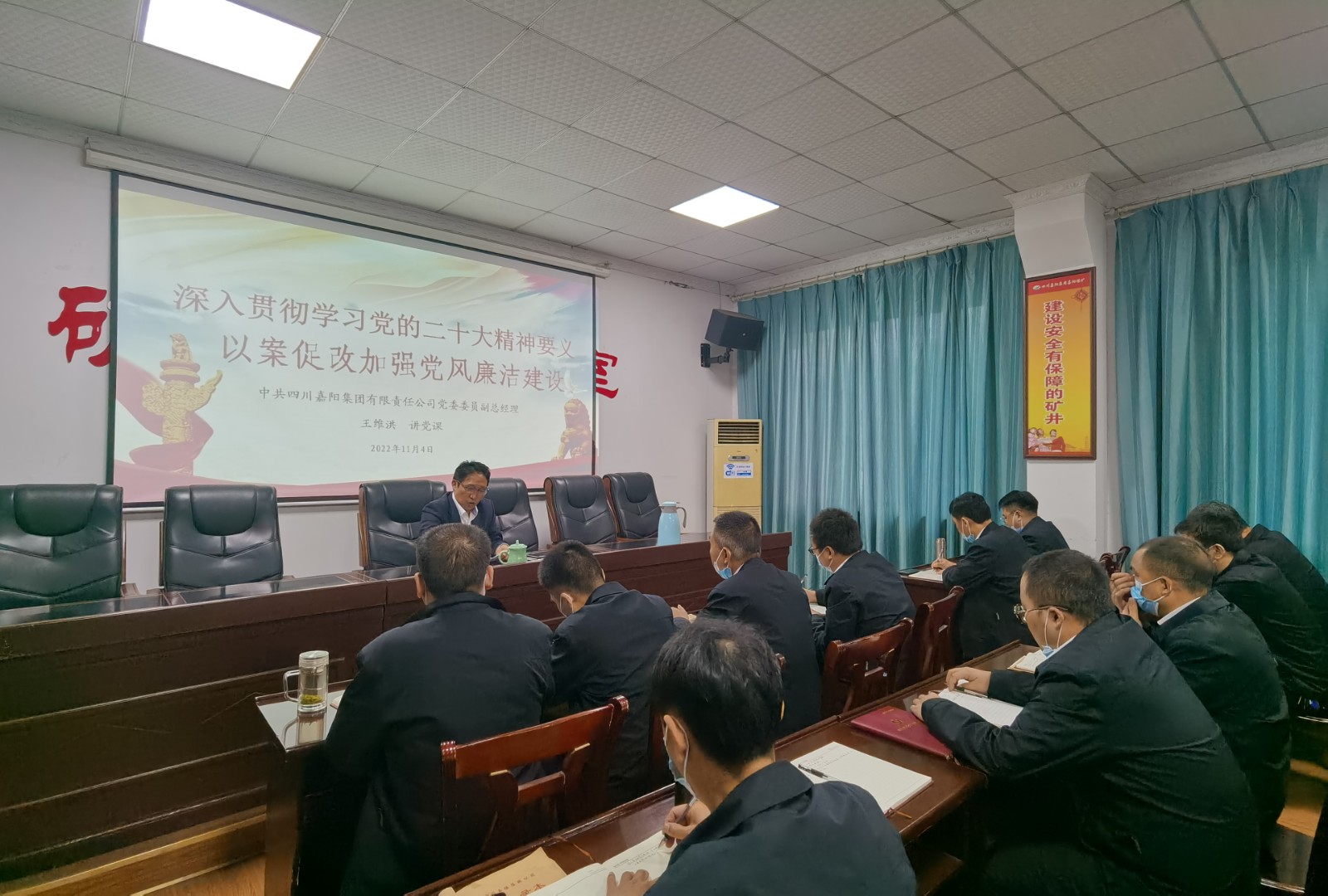 11月4日,按照嘉陽(yáng)集團(tuán)黨委安排,黨委委員、副總經(jīng)理王維洪、金大鈞分赴基層隊(duì)站,為嘉陽(yáng)煤礦、財(cái)務(wù)系統(tǒng)、營(yíng)銷公司黨員、管理人員進(jìn)行廉潔教育黨課宣講,黨課內(nèi)容翔實(shí)、發(fā)人深省。
