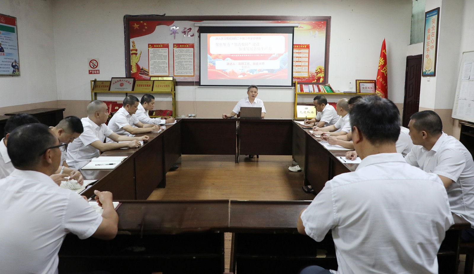 8月15日,嘉陽煤礦“張獻(xiàn)云技能大師工作室”帶頭人、2024年“樂山市五一勞動獎?wù)隆鲍@得者、嘉陽工匠張獻(xiàn)云為采煤二隊黨員和生產(chǎn)骨干宣講黨的二十屆三中全會精神,倡導(dǎo)向新求質(zhì)提效,助力企業(yè)高質(zhì)量發(fā)展。