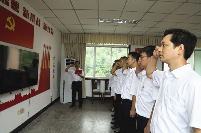 “我志愿加入中國(guó)共產(chǎn)黨,擁護(hù)黨的綱領(lǐng),遵守黨的章程,履行黨員義務(wù),執(zhí)行黨的決定,嚴(yán)守黨的紀(jì)律,保守黨的秘密,對(duì)黨忠誠(chéng),積極工作,為共產(chǎn)主義奮斗終身……在黨群工作部部長(zhǎng)姚建軍的領(lǐng)誓下,新黨員們莊嚴(yán)宣誓。