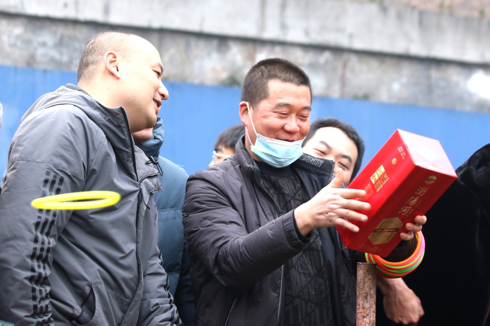 “實(shí)物套圈”與“貳柒拾”爭(zhēng)霸在官斗山足球場(chǎng)同步進(jìn)行,職工們攜妻帶子來(lái)到礦區(qū)“碰運(yùn)氣”。長(zhǎng)方形的活動(dòng)現(xiàn)場(chǎng)圍了個(gè)里三層外三層,等待“出擊”的家屬們,在彩圈售賣(mài)處排起的長(zhǎng)龍繞了兩道彎。凝神聚氣、預(yù)估距離,屏住呼吸、瞄準(zhǔn)目標(biāo),轉(zhuǎn)動(dòng)手腕、用力一揮,天空中快速閃過(guò)一道道美麗的拋物線。有套中目標(biāo)豐收喜悅的歡呼,有擦肩而過(guò)的嘆息與加油。套上三兩瓶好酒,回家過(guò)個(gè)熱鬧年,無(wú)論老少,眼里都是希望。