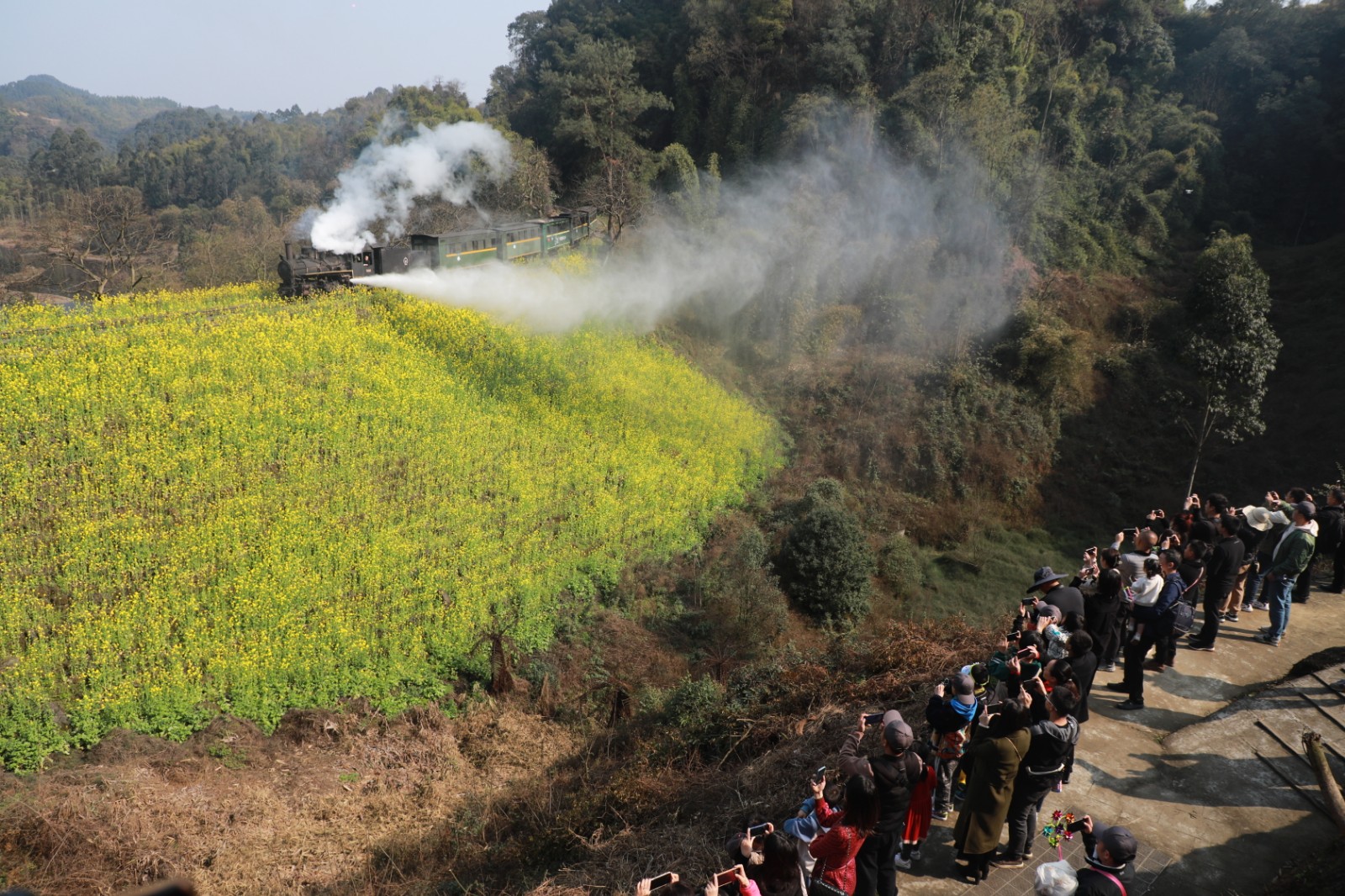 與往年不同,今年的短途賞花觀光專列到達段家灣,有專門的表演火車為游客表演。四川100個最美觀景·拍攝點——段家灣“人滿為患”;亮水沱景點同時種植了油菜花,犍為新八景之鐵龍飛虹呈現(xiàn)油菜花版新景觀,新景觀反響熱烈。