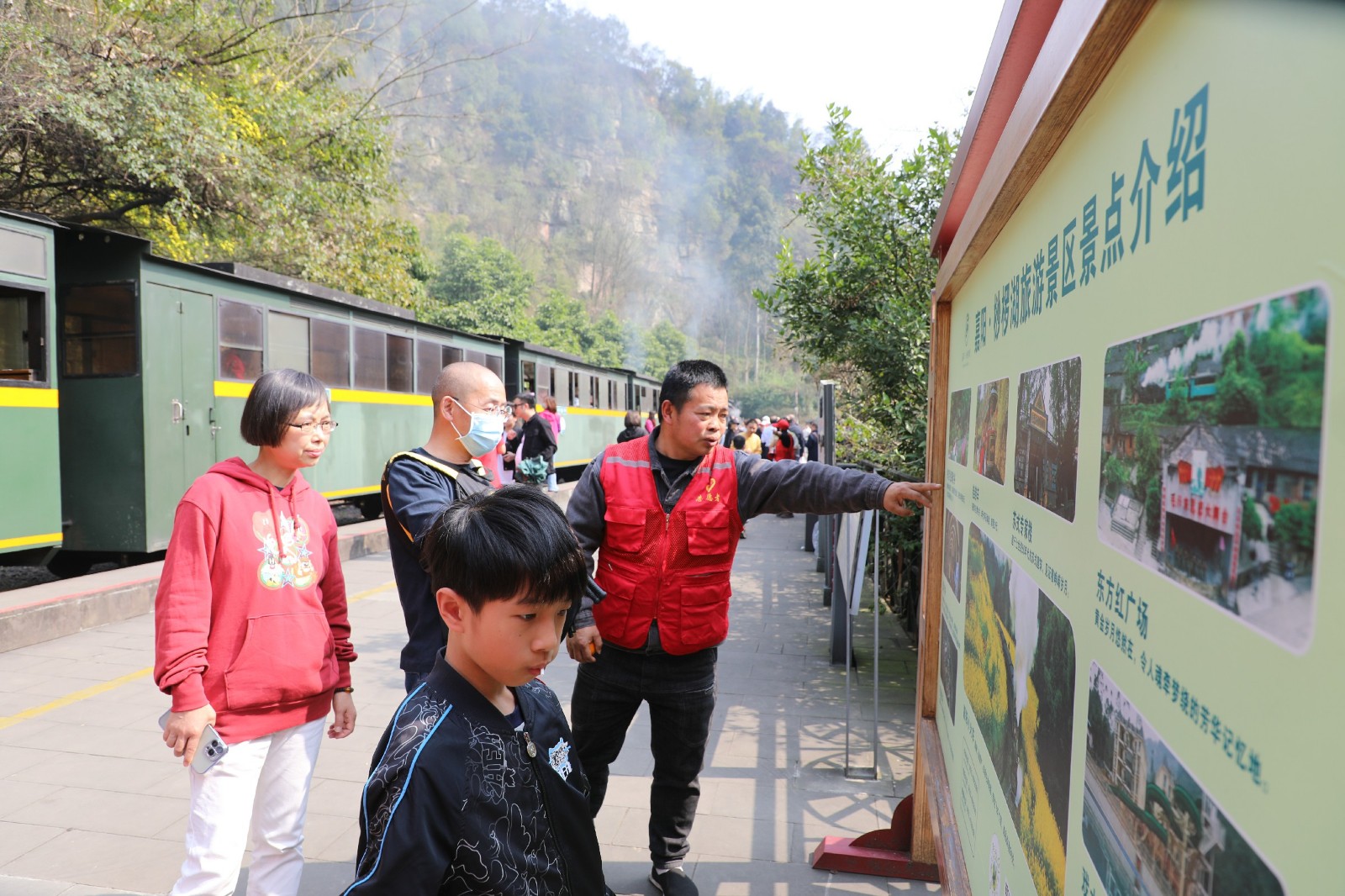 陽春三月,菜花金黃,一列冒著蒸汽、吐著白煙的小火車帶著“嗚嗚”的汽笛聲從花叢中穿過,于是山被喚醒了,花兒們競相開放爭奇斗艷,水被喚綠了,映照著藍(lán)天上的朵朵白云。這列“比熊貓還要珍貴”的蒸汽小火車吸引著四面八方的游客,樂山周邊縣市的攜妻帶子之旅、川內(nèi)各地的呼朋喚友之行、國內(nèi)外旅行社嘉陽小火車賞春之程……游客們紛至沓來。游客接待中心,躍進(jìn)站、芭蕉溝火車站、黃村井觀光礦井,芭蕉溝大街小巷,到處擠滿了前來觀光的人群。“一票難求、一餐難求”,嘉陽景區(qū)旅游火得發(fā)燙?;局米詥拥?月12日,接待游客超過5萬人次。