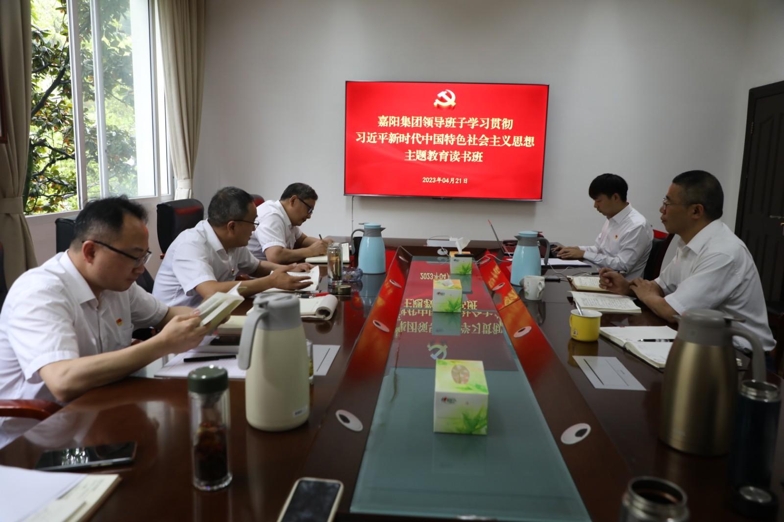 4月21日,嘉陽(yáng)集團(tuán)領(lǐng)導(dǎo)班子主題教育讀書班開展學(xué)習(xí)交流,領(lǐng)導(dǎo)班子成員交流習(xí)近平新時(shí)代中國(guó)特色社會(huì)主義思想的學(xué)習(xí)心得體會(huì),黨委書記、董事長(zhǎng)杜勤講話。