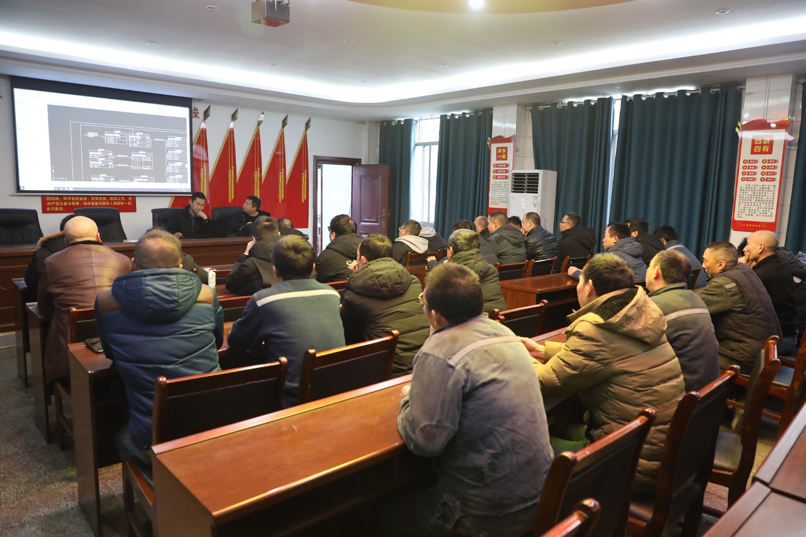 為此,在地面觀音溪、楊店子主通風(fēng)機(jī),防爆門智能化改造后,負(fù)責(zé)智能改造項(xiàng)目實(shí)施的機(jī)電隊(duì)牽頭延伸智能技術(shù)至井下各掘進(jìn)區(qū)域。12月下旬,機(jī)電隊(duì)完成六套諾文科智能局扇控制系統(tǒng)全面調(diào)試后,40余名專業(yè)技術(shù)人員齊聚一堂,集中進(jìn)行理論與實(shí)操培訓(xùn),掌握設(shè)備安裝、變頻器設(shè)置等關(guān)鍵技能。后續(xù),智能局扇將利用生產(chǎn)間隙完成全面更換。