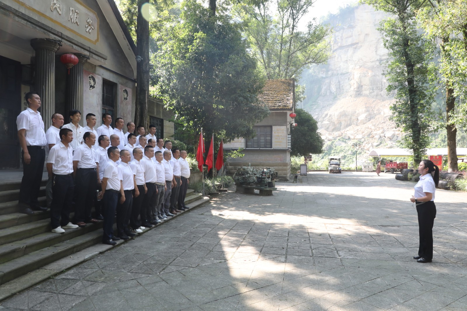 在芭蕉溝愛國主義教育基地,大家透過越崎樓探尋嘉陽的歷史文化與發(fā)展變遷,感悟創(chuàng)始人之一孫越崎先生的傳奇人生,駐足礦山博物館,認真聆聽川投峨旅講解員帶來的生動微黨課,深刻體會礦業(yè)發(fā)展的艱辛與輝煌。面對黨旗,全體黨員在黨建長廊重溫入黨誓詞,錚錚誓言彰顯著堅守初心的堅定信念。