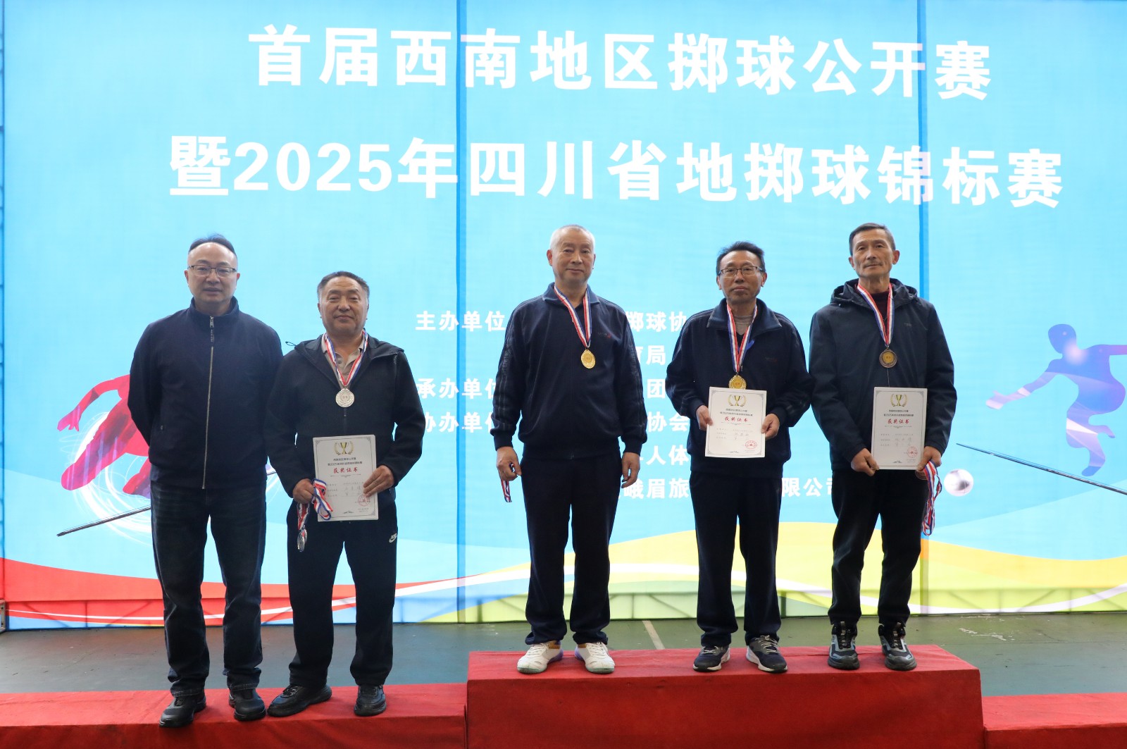經(jīng)過3天數(shù)輪的比賽,決出了金、銀、銅獎和優(yōu)勝獎,評選出了個人和集體體育道德風(fēng)尚獎。四川省地擲球協(xié)會主席張恩,樂山市老年人體育協(xié)會主席廣兵,嘉陽集團(tuán)黨委副書記、副董事長、總經(jīng)理謝建國,嘉陽集團(tuán)黨委副書記、工會主席王維洪,四川省地擲球協(xié)會副主席楊毅等領(lǐng)導(dǎo)參加了開幕式,并分別為獲獎選手頒獎。
