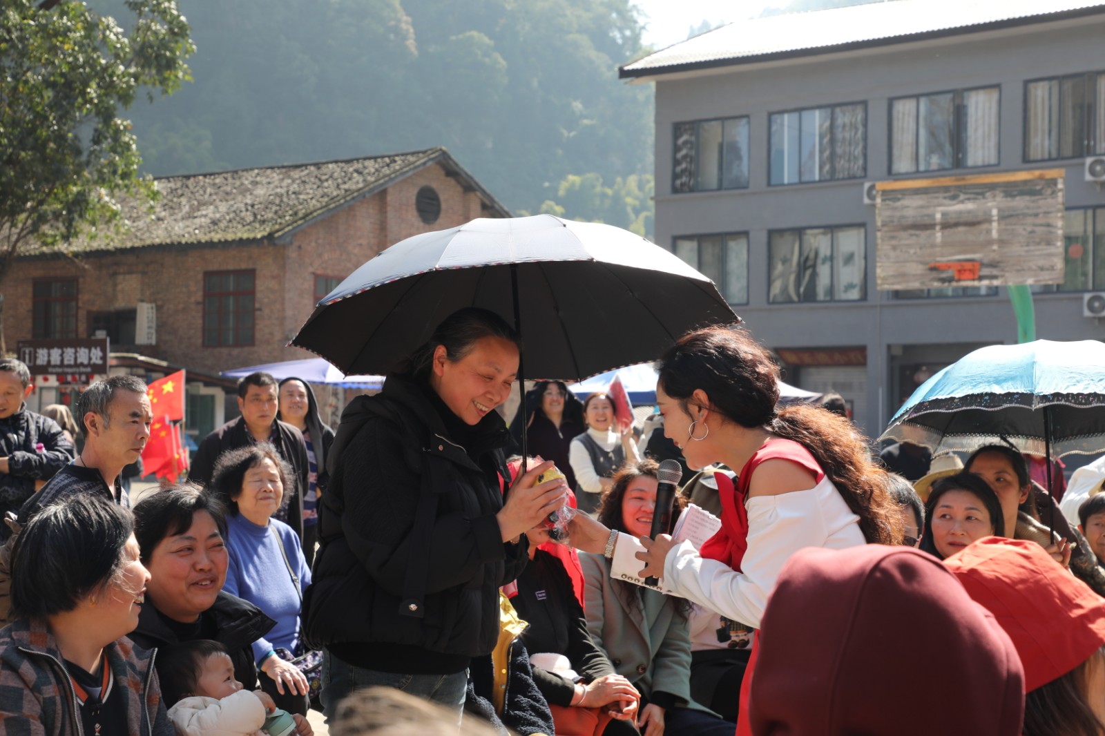 開(kāi)場(chǎng)舞《金羽筑光》服飾精美、舞姿優(yōu)雅,一開(kāi)始就吸引了觀眾們的目光。經(jīng)典劇目變臉和吐火則讓人為川劇的魅力所折服,現(xiàn)場(chǎng)喝彩聲、掌聲不斷響起。一會(huì)兒變出一只鴿子,一會(huì)兒紙屑像雪花漫天飛舞,魔術(shù)表演總是讓人倍感神秘,即使現(xiàn)場(chǎng)揭秘也讓人摸不著頭腦。短短幾分鐘的茶藝展示,讓人看到了茶藝師精湛的功夫。經(jīng)典歌曲《上春山》《雨一直下》一亮嗓就讓人驚艷,舞蹈《無(wú)名的人》演繹了平凡崗位的執(zhí)著堅(jiān)守。兩輪互動(dòng)游戲不僅普及了工會(huì)的相關(guān)知識(shí),更將氛圍推向了高潮,游客和職工紛紛舉手踴躍回答問(wèn)題,在收獲獎(jiǎng)品的同時(shí)加深了對(duì)工會(huì)知識(shí)的了解。