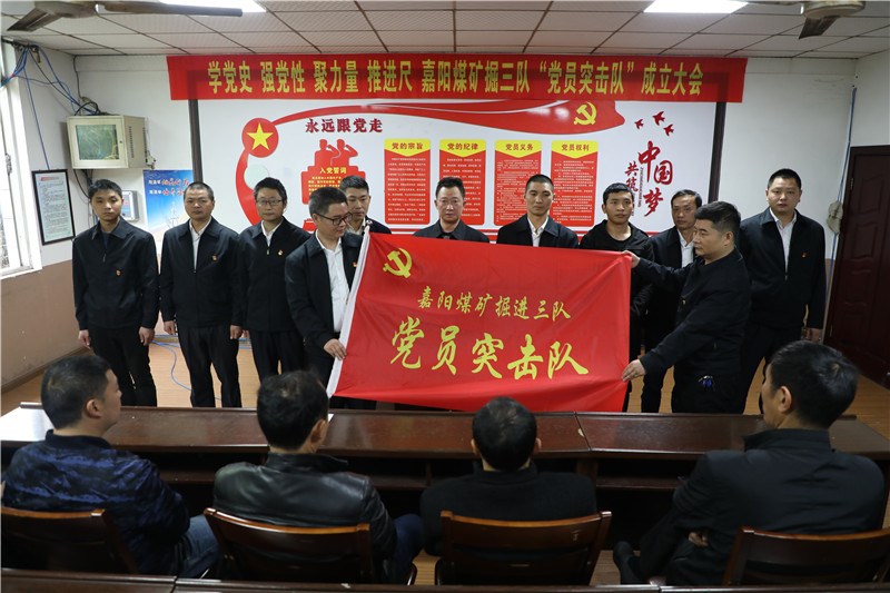 掘進三隊黨支部書記秦剛在接過“黨員突擊隊”旗幟時表示:全隊上下務(wù)必堅定信心,昂揚斗志,發(fā)揚嘉陽人“特別能吃苦、特別能戰(zhàn)斗”的優(yōu)良作風(fēng),堅定信心,戰(zhàn)勝困難,堅決打贏這場“進尺攻堅戰(zhàn)”。黨群部部長姚建軍希望掘三隊的黨員同志們要以黨史學(xué)習(xí)教育為契機,提高思想認識,強化責(zé)任擔(dān)當(dāng),大力弘揚煤礦“燃燒精神”,在急難險重任務(wù)中彰顯黨員的先鋒模范作用,積極營造“比、學(xué)、趕、超”的濃厚氛圍,以榜樣的力量帶動全隊職工奮勇爭先,以黨建引領(lǐng)促進安全生產(chǎn)任務(wù)的圓滿完成。