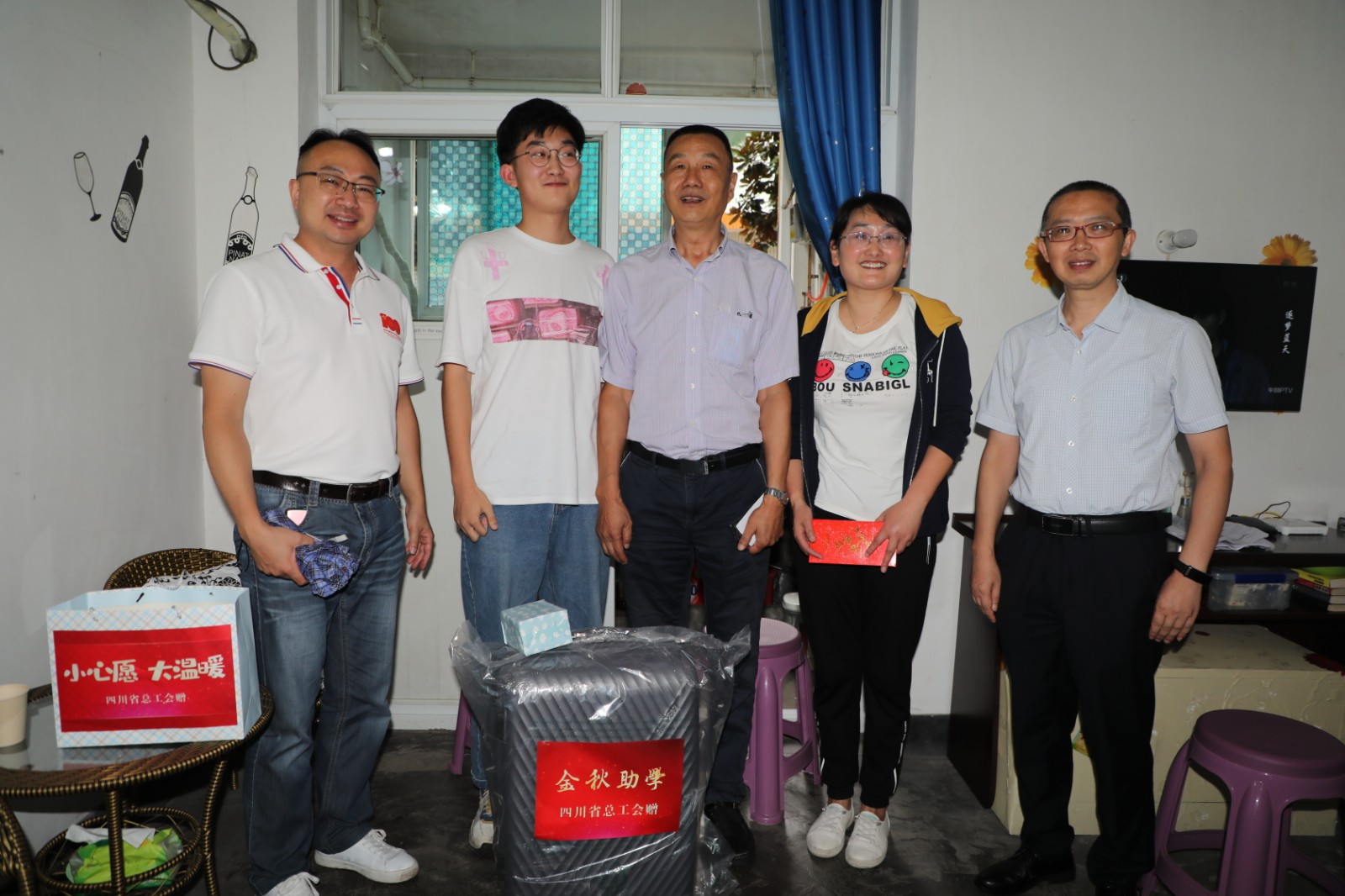 8月26日,四川省總工會(huì)二級(jí)巡視員陳黎一行冒著細(xì)雨來(lái)到嘉陽(yáng)困難職工家庭,看望慰問(wèn)即將入學(xué)的貧困大學(xué)生,為他們送去組織的關(guān)心和問(wèn)候。