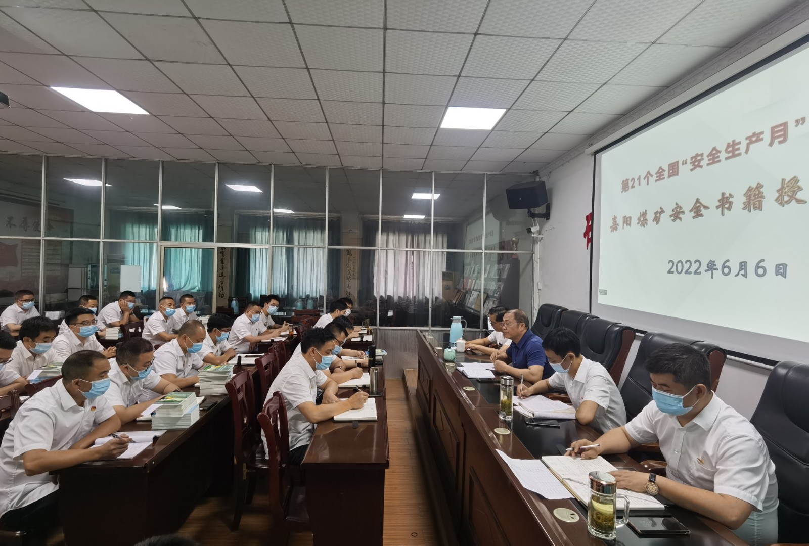 6月6日,嘉陽煤礦舉行安全書籍授書儀式,嘉陽集團(tuán)總經(jīng)理范勤英為煤礦各生產(chǎn)隊(duì)和礦辦相關(guān)負(fù)責(zé)人授最新安全讀本,針對(duì)近期煤礦安全生產(chǎn)實(shí)際指出安全技術(shù)管理新思路,提出新要求。