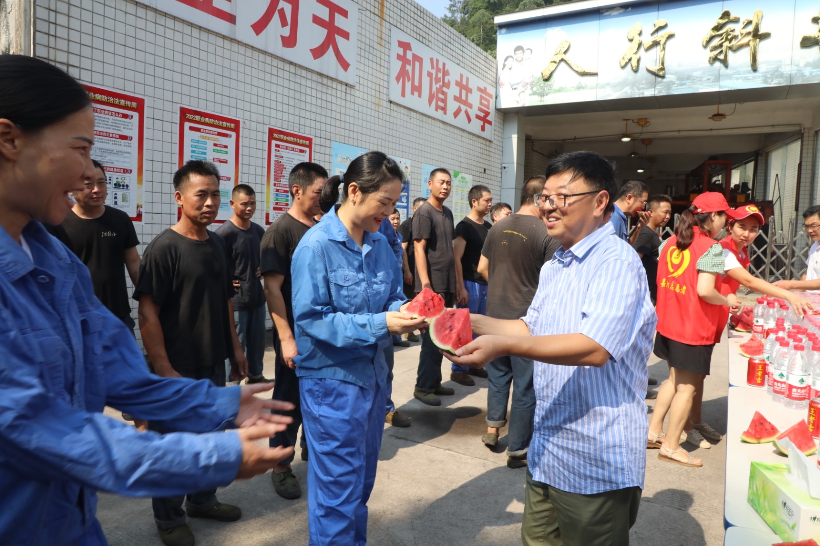 胡志勇將王老吉、礦泉水、西瓜等遞到職工手中,并向大家表達(dá)最誠摯的感謝,感謝煤礦工人不懼高溫堅(jiān)守崗位,為電煤保供所做的積極貢獻(xiàn),并親切叮囑大家,不僅要克服高溫天氣帶來的影響,保證安全生產(chǎn),也要注意自身防護(hù),強(qiáng)化安全意識,保證身體健康。同時(shí),他還囑咐相關(guān)負(fù)責(zé)同志要全力做好職工的防暑降溫工作,采取切實(shí)有效措施,最大限度減少疫情和夏季高溫天氣因素疊加給職工生產(chǎn)生活帶來的不利影響。
