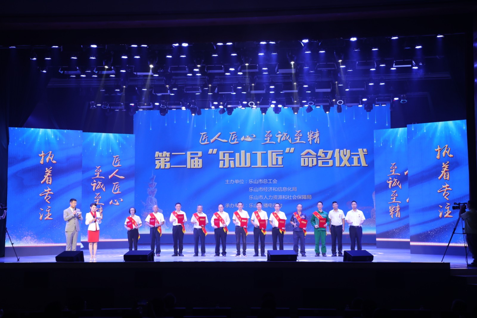 市委書記馬波在致辭中說:大國工匠是時代的標桿,是最閃亮的精神坐標。“樂山工匠”是堅守崗位的普通勞動者,是平凡崗位上創(chuàng)新創(chuàng)造的奉獻者,體現(xiàn)了執(zhí)著專注的匠人追求、精益求精的匠人境界、一絲不茍的匠人品格、追求卓越的匠人取向,是全市廣大勞動群眾的驕傲。全市廣大勞動者要見賢思齊、學(xué)習(xí)模范,自覺把工匠精神內(nèi)化于心、付之于行,讓工匠精神在嘉州大地傳承接續(xù)、發(fā)揚光大。活動現(xiàn)場,55名“樂山工匠”依次走到臺前,接受這份屬于勞動者的榮光。