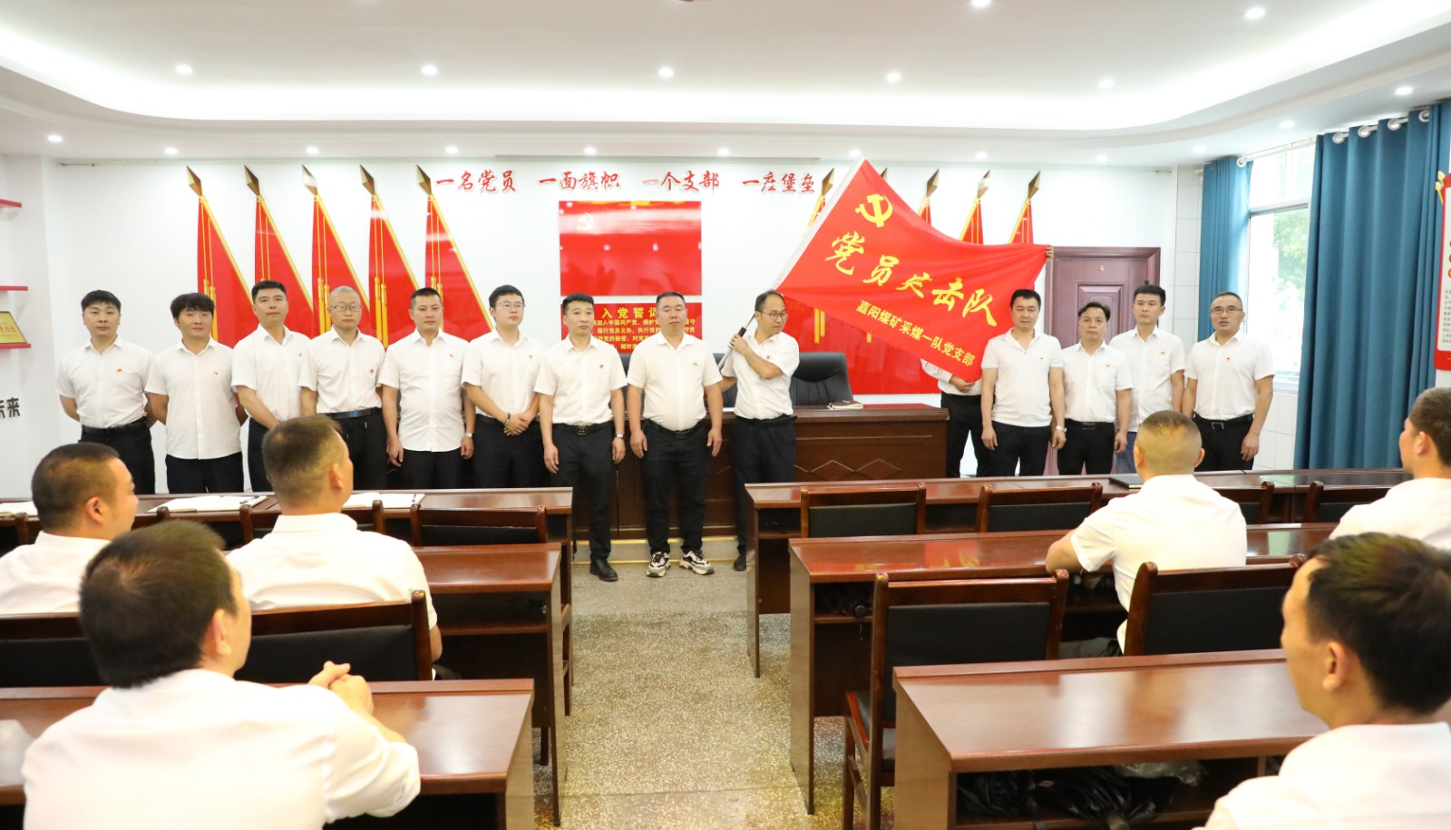 “你們是不畏艱險(xiǎn)的生力軍……”6月15日,嘉陽煤礦采煤一隊(duì)黨支部在黨群活動室舉行“黨員突擊隊(duì)”授旗儀式,深入推進(jìn)主題教育走深走實(shí),公司黨委書記、董事長杜勤授予黨支部“黨員突擊隊(duì)”旗幟,為黨員干部添信心、鼓干勁,號召全體黨員強(qiáng)化示范引領(lǐng),團(tuán)結(jié)職工再建新功。