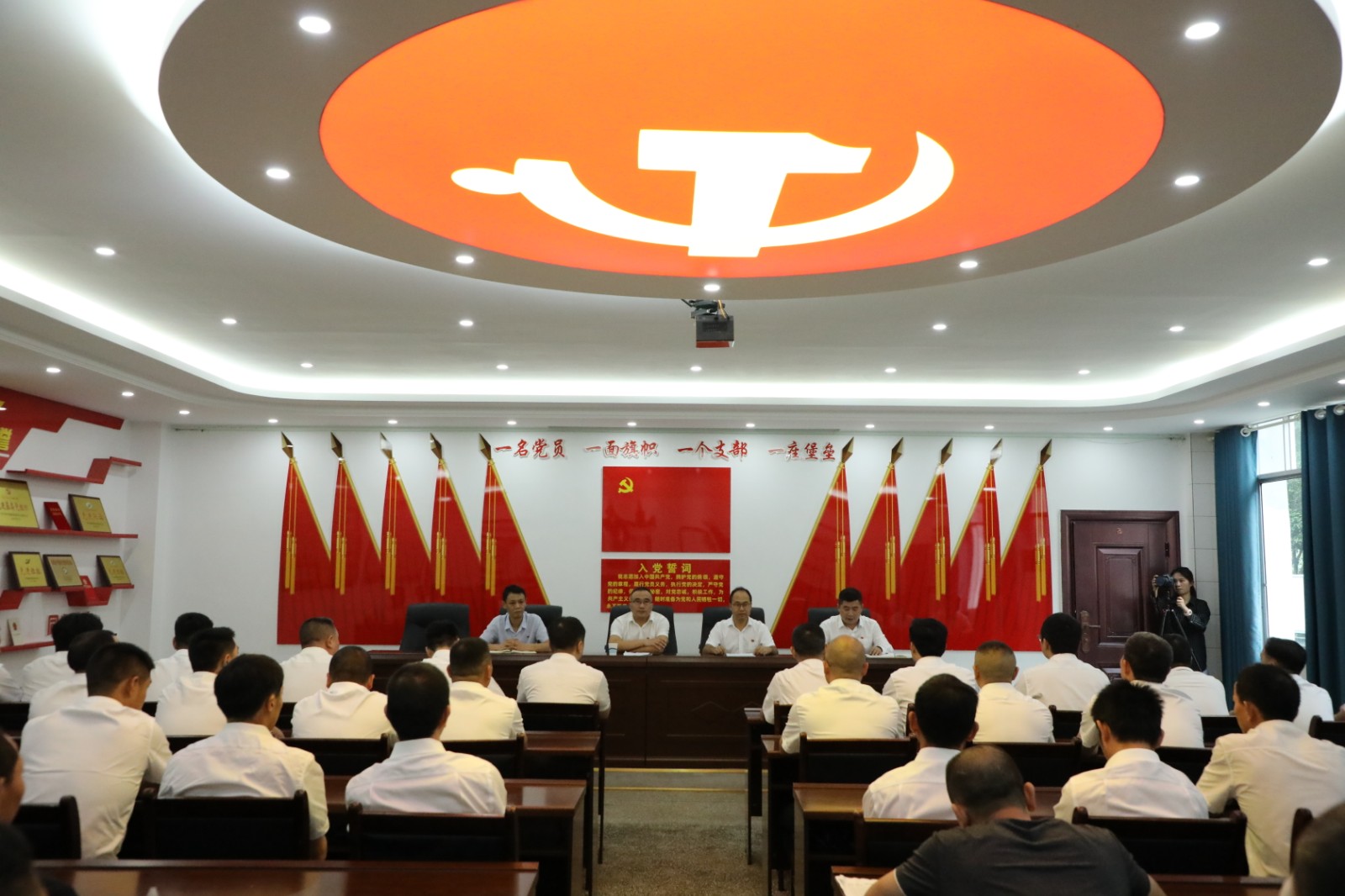 莊重的儀式上,活動室上方的黨旗更加鮮艷奪目,嘉陽煤礦黨總支書記文永欣首先作儀式致辭,他介紹了采煤一隊(duì)生產(chǎn)現(xiàn)狀和面臨的困難與挑戰(zhàn),希望成立“黨員突擊隊(duì)”充分發(fā)揮黨員的先鋒模范作用,以黨建促進(jìn)安全生產(chǎn),助力全隊(duì)攻堅(jiān)克難再建新功。