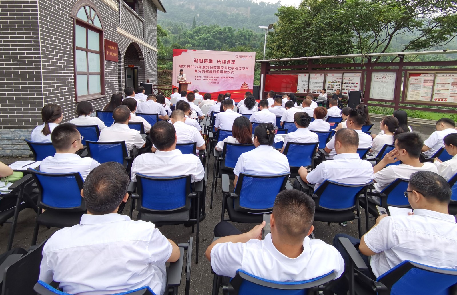 6月25日上午,犍為縣黨員教育現(xiàn)場(chǎng)教學(xué)點(diǎn)位發(fā)布暨黨員教育師資授聘儀式在小市村“中共犍為縣第一個(gè)支部陳列室”舉行,嘉陽(yáng)煤礦等13個(gè)單位獲犍為縣首批黨員教育現(xiàn)場(chǎng)教學(xué)點(diǎn)授牌,沈忱等57人被納入犍為縣黨員教育師資庫(kù)。