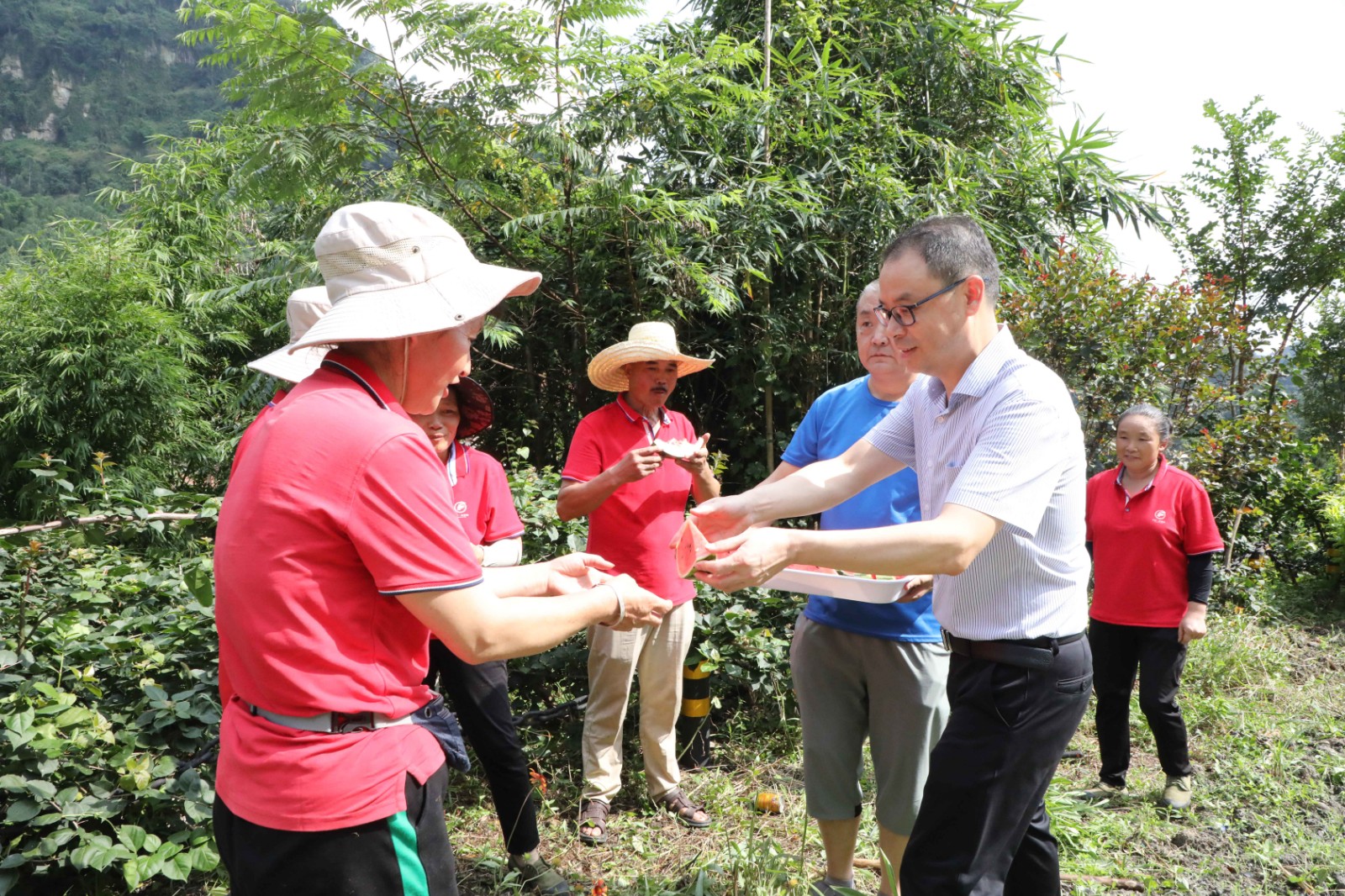 “把手里的活放一放,吃口西瓜解解暑,喝口水涼快涼快”,呂明強(qiáng)一邊招呼著職工們,一邊將切好的西瓜送到職工手中,機(jī)關(guān)第一黨支部支委成員也將一瓶瓶礦泉水遞到職工手上。職工們吃著清甜可口的西瓜,喝著解暑的礦泉水,紛紛表示,一定不辜負(fù)組織的關(guān)心,將堅(jiān)守崗位,恪盡職守,積極工作。