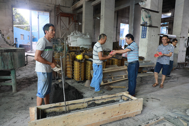 在副總經(jīng)理王維洪、袁成金的帶領下,機關二支部的黨員代表們帶著西瓜、礦泉水等防暑降溫物品來到機電制造維修分公司,走進裝配車間、精工車間、鑄造車間、預制車間,看望慰問奮戰(zhàn)在高溫環(huán)境下的一線職工,為他們送去清涼與關懷。在裝配車間,副總經(jīng)理王維洪為正在辛苦工作的工人師傅們送上礦泉水,叮囑他們天氣越熱越要多喝水,同時提醒大家要合理調(diào)整作息時間,注意勞逸結合,確保安全度夏。來到精工車間,副總經(jīng)理袁成金向忙碌的工人師傅們一邊道著辛苦一邊遞上西瓜,“歇一歇,吃塊西瓜涼快一下!”關懷的話語沁人心脾,清涼傳遞到了四個車間里的每個職工身上。兩位領導要求機電分公司主管領導一定要做好防暑降溫工作,在確保職工們安全、健康的前提下組織生產(chǎn)。