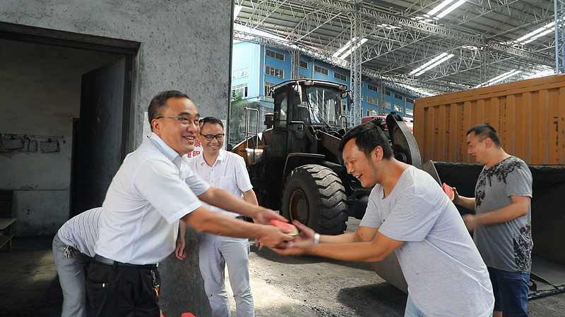 職工們對公司領導百忙之中抽出時間,頂著烈日來看望他們表示感謝,表示將努力工作,以實際行動回報組織對他們的關愛。